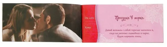 Этот набор создан для самых романтичных натур и тех, кому хочется добавить нежность в отношения. Горячие купоны «Романтика для двоих» станут новым источником романтического вдохновения. А вы подарите друг другу волнующие и прекрасные часы вместе, как на первом свидании!