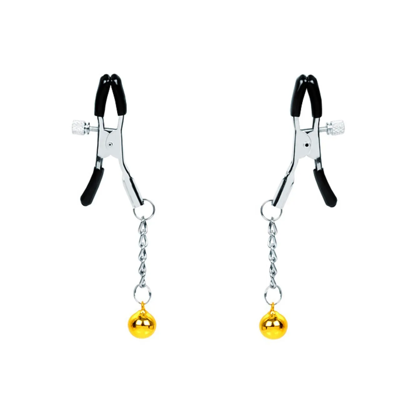 Изящные аксессуары для стимуляции сосков и усиления сексуального возбуждения. На концах зажимов имеются специальные эластичные накладки, препятствующие сильному сдавливанию и травмированию сосков. На каждом изделии предусмотрен регулировочный винт, позволяющий контролировать силу сдавливания.