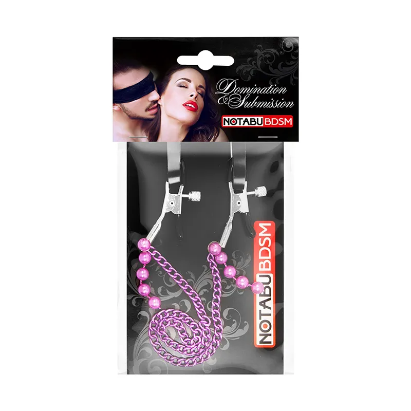 Зажимы для сосков NOTABU, с цепочкой и бусинами, металл, фиолетовый