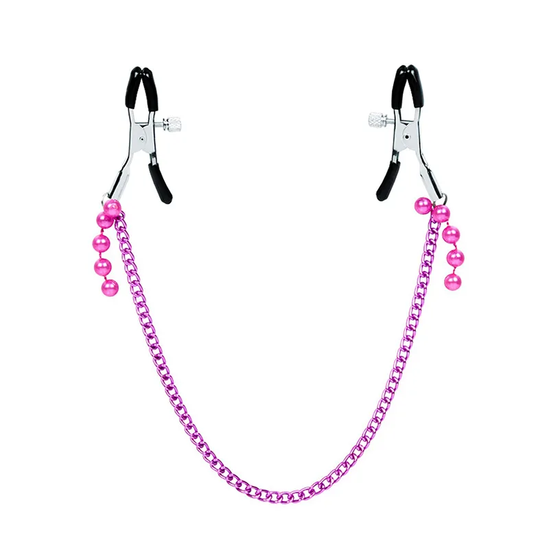 Изящные аксессуары для стимуляции сосков и усиления сексуального возбуждения. На концах зажимов имеются специальные эластичные накладки, препятствующие сильному сдавливанию и травмированию сосков. Зажимы соединены лёгкой металлической цепочкой и украшены подвесками из бусин. На каждом изделии предусмотрен регулировочный винт, позволяющий контролировать силу сдавливания.