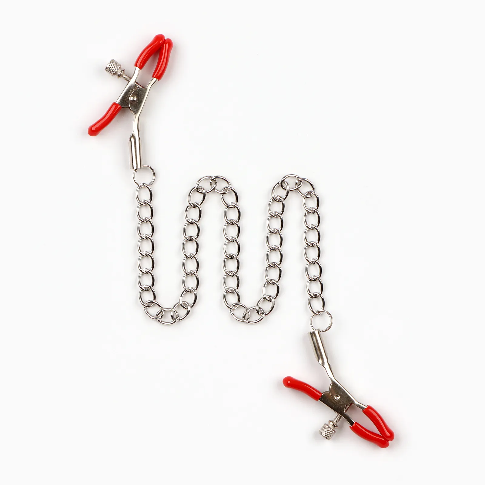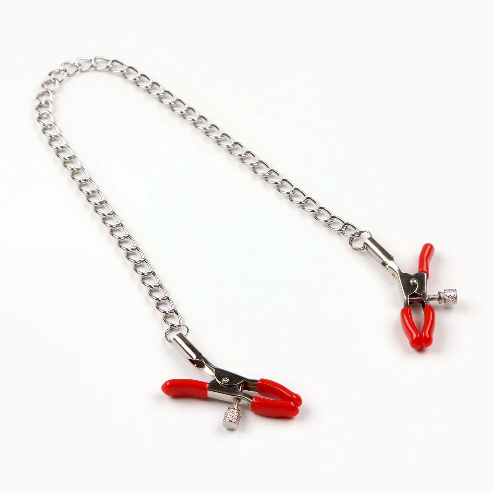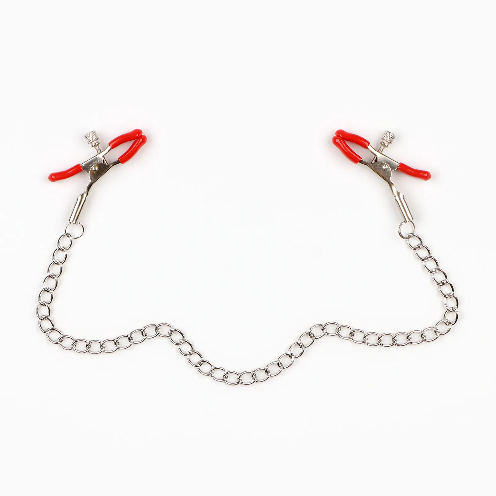 Зажимы для сосков Оки-Чпоки, БДСМ аксессуар, с цепочкой 30 см, винтовой, металл, красный