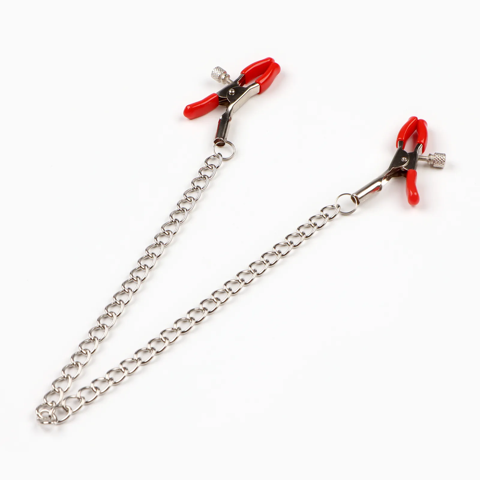 —Зажимы для сосков Оки-Чпоки, БДСМ аксессуар, с цепочкой 30 см, винтовой, металл, красный