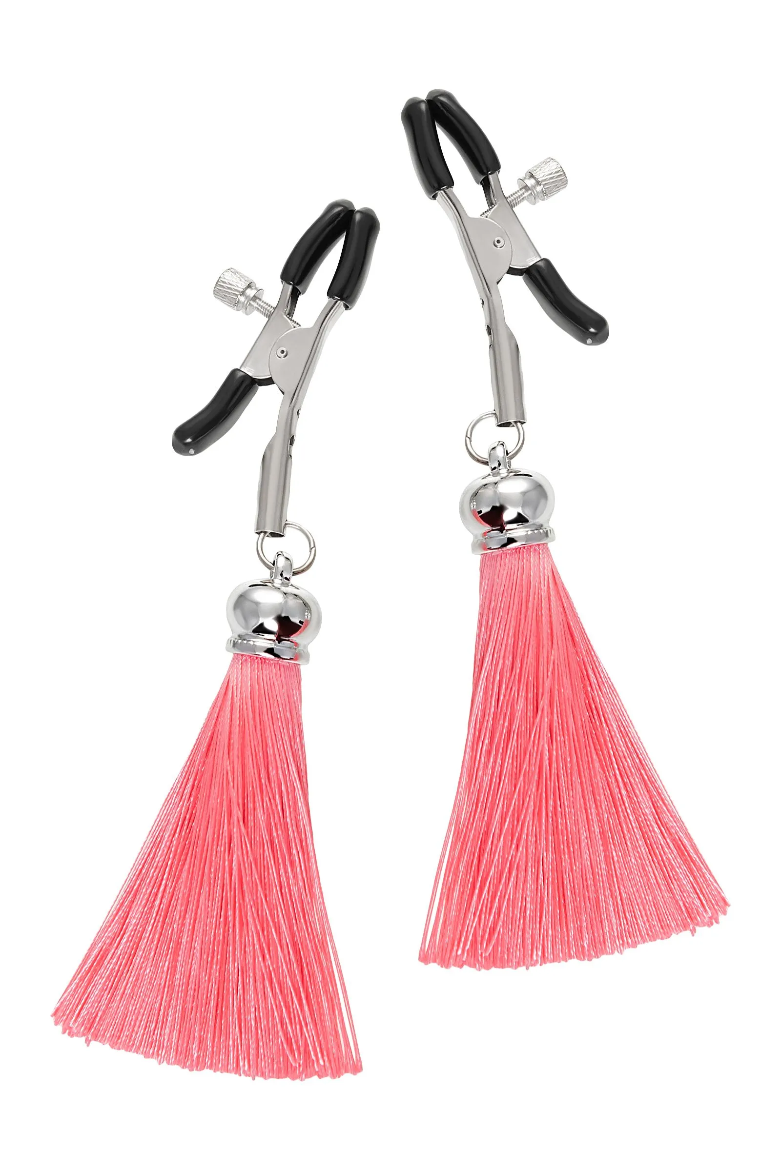 Хотите усилить ощущения от страстных игр с партнером? Увеличить степень возбуждения до невозможного можно с помощью зажимов-прищепок ручной работы от Рecado. Невероятно сексуальный аксессуар пробудит фантазию и повысит чувственность эротических зон. Мягкие резиновые накладки оберегают соски от повреждений. Металлический винт регулирует степень сжатия зажимов: от нежно-приятного до сильно-грубого. На концах черные резиновые наконечники, для безопасного воздействия на нежные участки тела. Компактный размер удобно вмещается как в женскую, так и в мужскую руку. Кисточки из натурального шелка не только визуально украшают эротический атрибут, но и еще утяжеляют его. Для самых смелых и искушенных любителей доминировать и подчиняться. ● Ручная работа. ● Надежная высококачественная фурнитура. ● Общая длина зажимов 14 см, длина кисточки 8,5 см. ● Не требуют специального ухода.