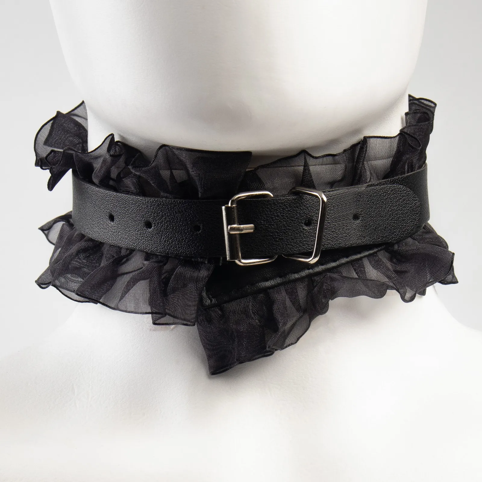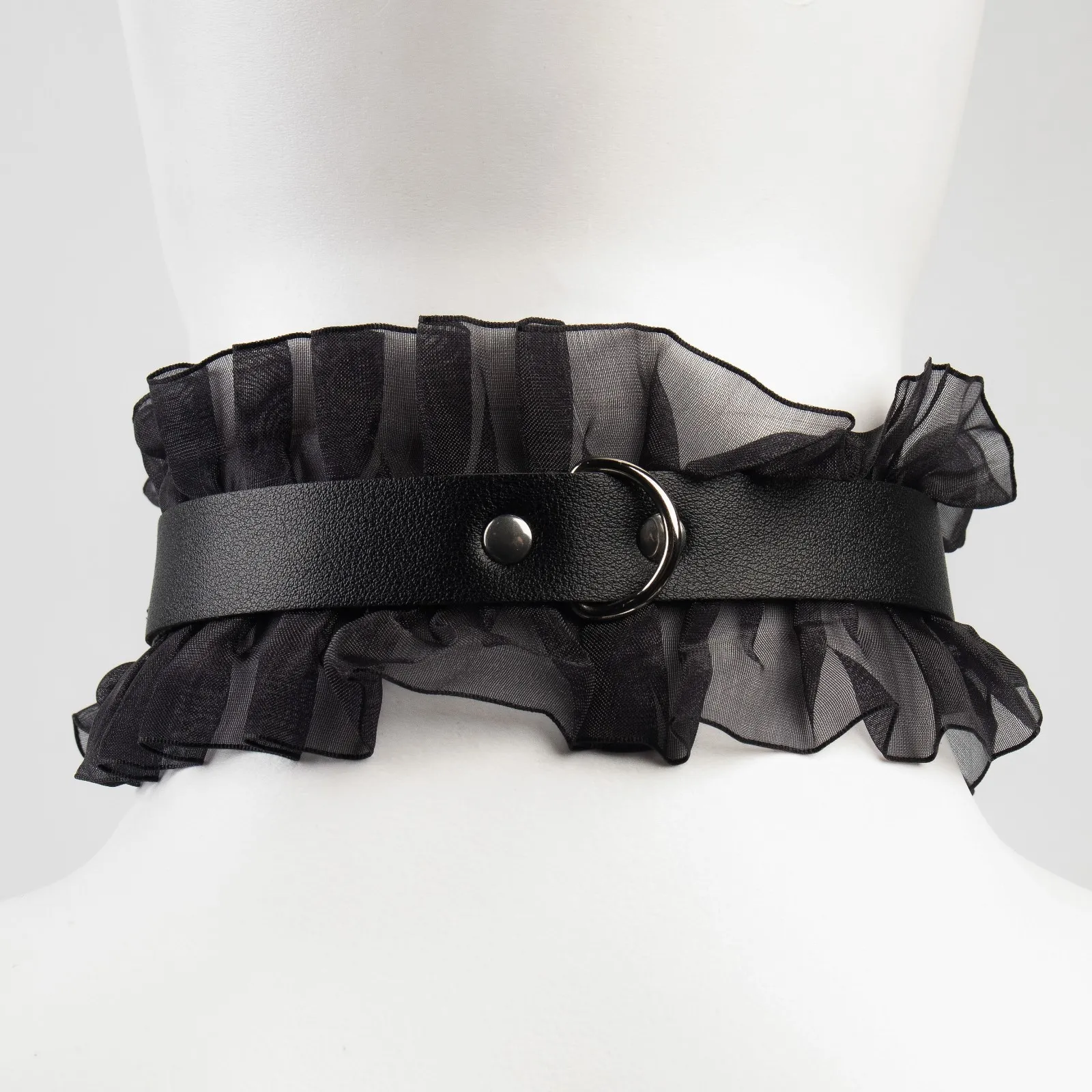 БДСМ набор выполнен из эко-кожи с кружевом - контраст нежности и грубости. Все ремни имеют систему регулировки. В состав набора входят 9 предметов: наручники, оковы, кляп, ошейник, поводок, верёвка, маска, зажимы для сосков, плеть.