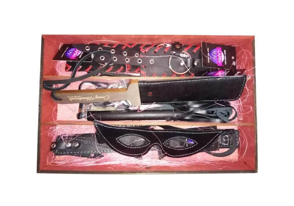 Эксклюзивный подарочный набор Pink Rabbit состоит из 7 аксессуаров, которые понравятся любителям игр с элементами БДСМ. В комплект входят: плеть, ошейник-воротник с поводком, маска, наручники, оковы, гибкий паддл и зажимы на соски. Вооружившись аксессуарами из набора, Вы сможете для начала обездвижить своего партнера при помощи наручников и оков, чтобы полностью покорить его своей воле, или же ограничиться только ошейником и контролировать его движения при помощи поводка. Чтобы добавить в игру острых ощущений, попробуйте использовать плеть или паддл, нежно поглаживая кожу партнера или же нанося ему более ощутимые удары.