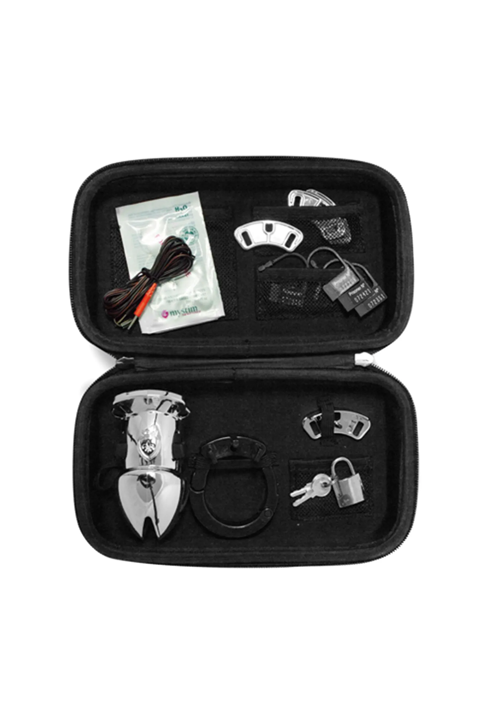 С электростимулятором Mystim Pubic Enemy № 1 каждый нарушитель интимного спокойствия будет лишен сексуальной свободы и наказан по всей строгости. Просто заприте пенис в металлической клетке и применяйте к нему любые меры, которые считаете нужными: подключайте к блоку электроимпульсов и пытайте разрядами тока разной интенсивности — от легкого покалывания и щекотки до ощутимых подергиваний и ритмичной пульсации. Не верьте мольбам «преступника» о пощаде, на самом деле ему нравится эта игра. Во время разовых экспериментов вы можете запирать клетку пластиковыми пломбами с идентификационным номером заключенного. А если планируете использовать клетку для регулярного ношения, закройте ее на металлический замок и не забудьте вставить в держатель табличку с указанием имени собственника, владеющего содержимым. C Mystim Pubic Enemy № 1 дни его сексуальной свободы окончены, но отсчет новым ощущениям только начат. Безопасный для здоровья материал: хирургическая сталь Регулируемая длина и диаметр для любого размера члена Съемные проводящие элементы В комплект входят металлический замок с 2-мя ключами, 5 пластиковых пломб, кабель и 10 табличек с надписью «Руки прочь! Этот заключенный принадлежит ___» Стильный бокс для хранения Подключается к блоку электроимпульсов через Mystim-Plug ПРИМЕЧАНИЕ: Функция E-stim работает только с базовым блоком Tension Lover или Cluster Buster (приобретаются отдельно) Внимательно ознакомьтесь с инструкцией перед использованием!