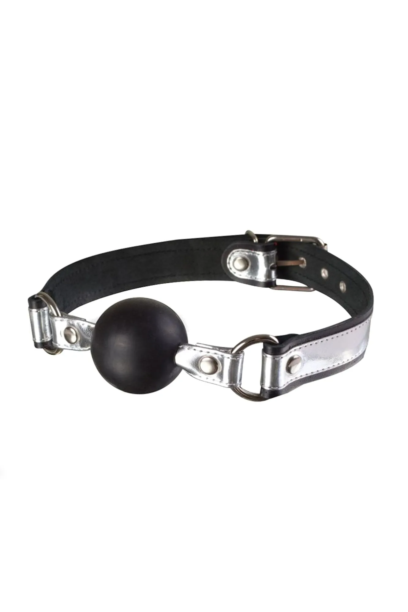 Кляп от Ситабелла – это девайс BDSM, который позволит сделать секс-партнёра безмолвным и покорным. Упругая сферическая часть изготовлена из современного материала ТЭП, который не способен нанести врез зубам и прост в уходе, достаточно промыть теплой водой с мыльным раствором и просушить. Особое внимание заслуживают ремешки, между которыми закреплён кляп-шар, они изготовлены из натуральной высококачественной кожи чёрного цвета и декорированы дополнительными накладками под серебро. Роскошный кляп непременно станет украшением Вашего тела. Металлическая фурнитура имеет никелевое покрытие. Зафиксировать девайс на теле и отрегулировать размер можно при помощи пряжки. Общая длина кляпа около 57 см. Ширина ремешков 2,5 см. Диаметр шара 4,5 см.