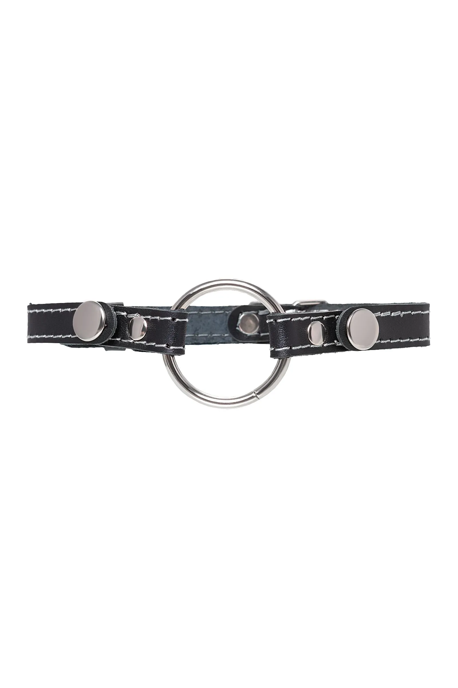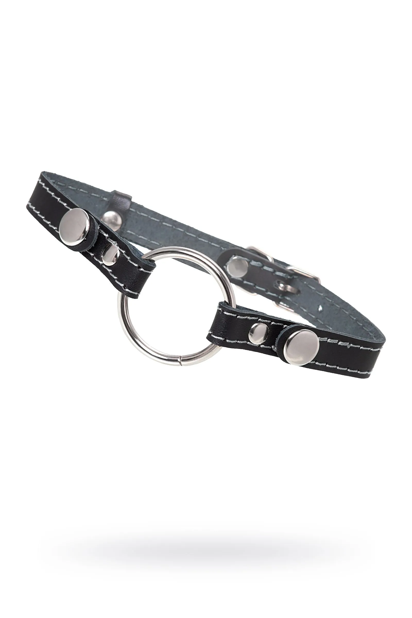 Кляп Pecado BDSM, «Кольцо 39 мм», с белой строчкой, натуральная кожа, черный