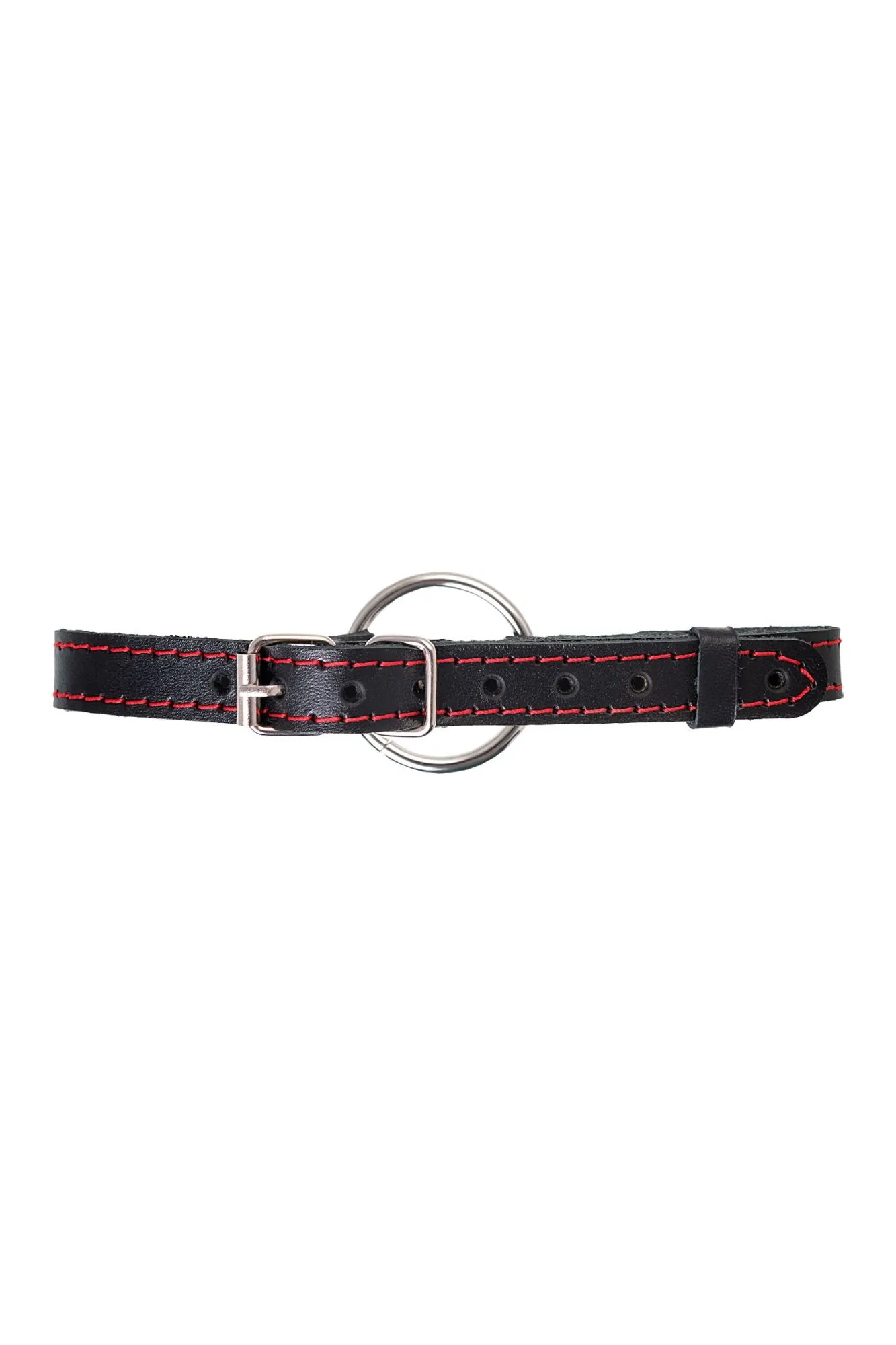 —Кляп Pecado BDSM, «Кольцо 39 мм», с красной строчкой, натуральная кожа, черный