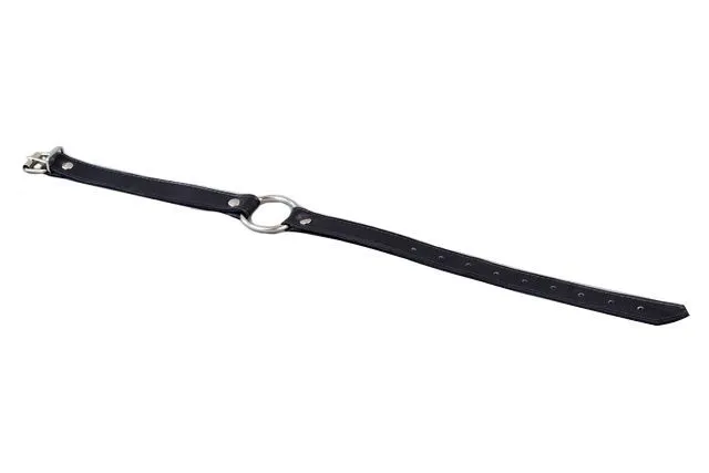 Расширитель с кольцом сделан из натуральной кожи компанией Подиум, Россия. Этот аксессуар используется любителями БДСМ в качестве кляпа. Диаметр колечка составляет 6 см. Изделие ручной работы фиксируется на голове при помощи ремешка с пряжкой.