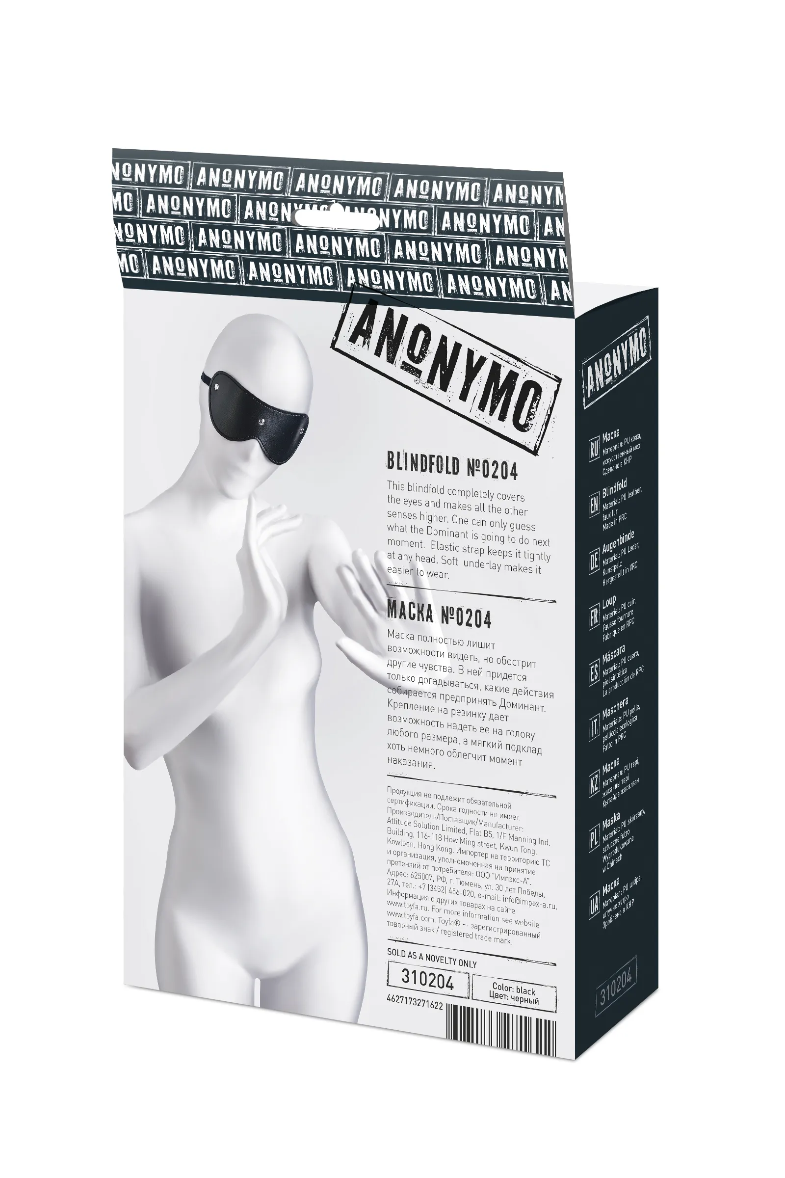—Маска Anonymo, PU кожа, черная, 24 см