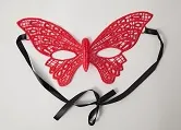 Красная кружевная маска Бабочка в венецианском стиле. Завязывается на черные атласные ленты. Размеры маски: длина- 22,5 см, ширина - 14 см. Упаковка- картонный конверт.
