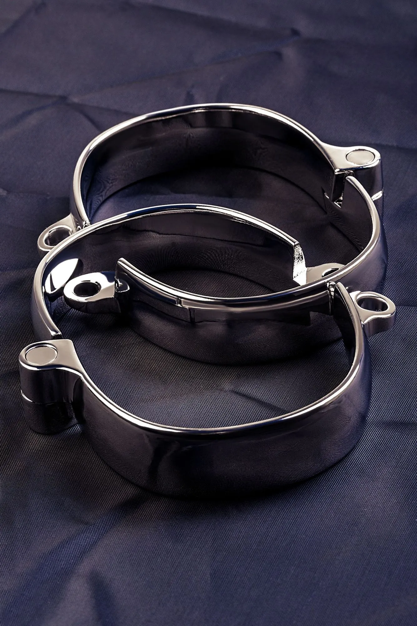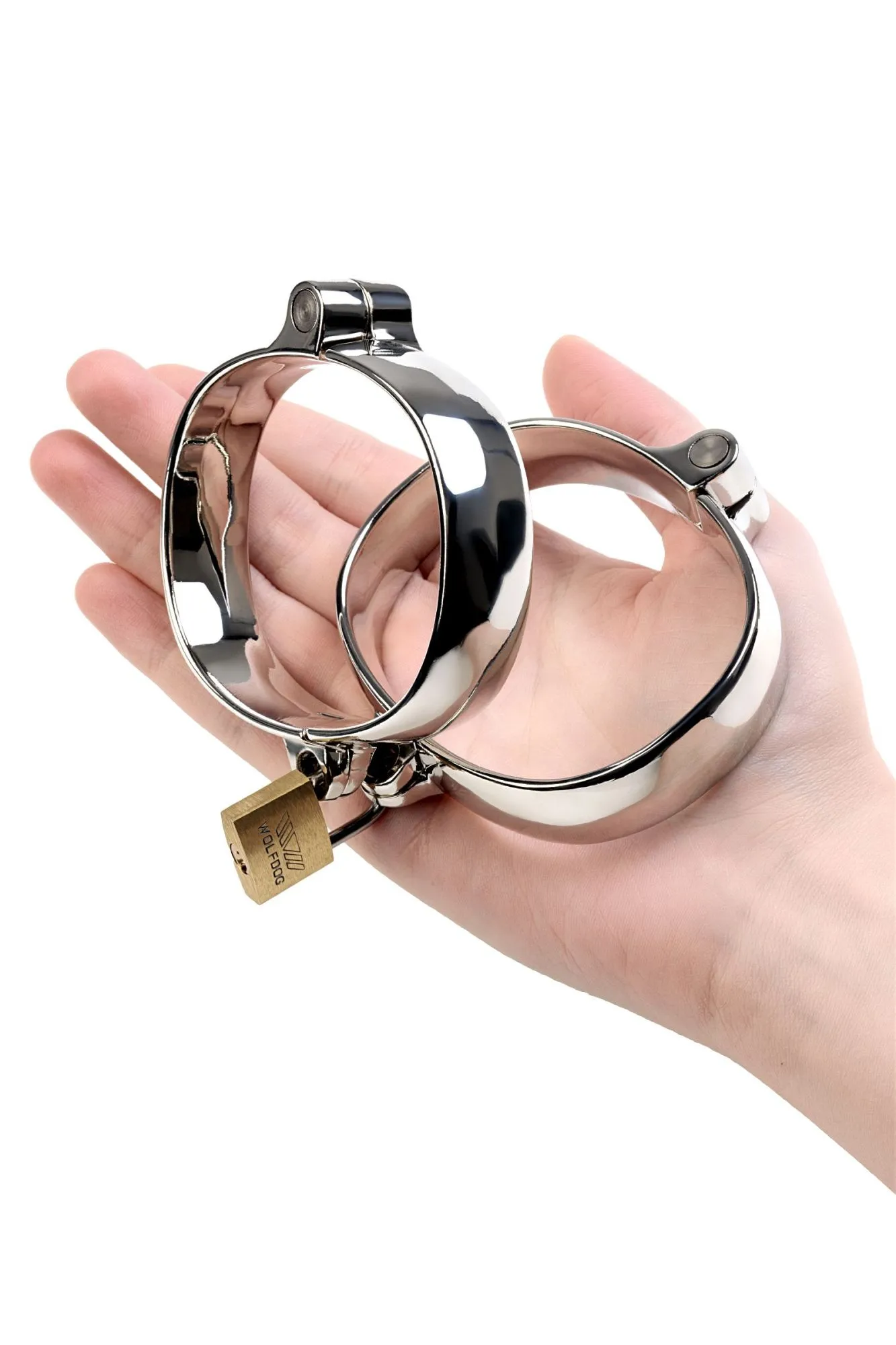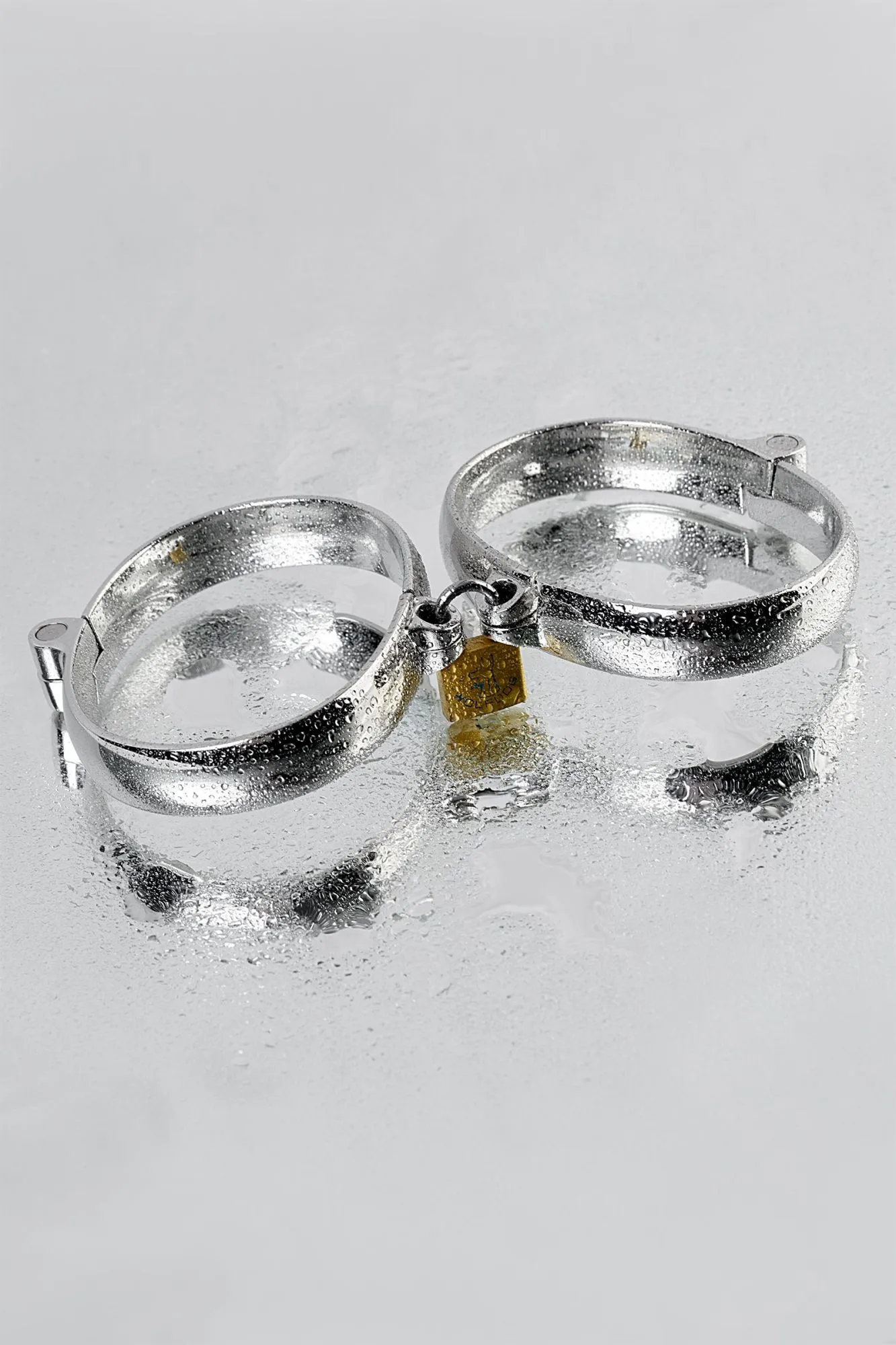 Металлические наручники - строгий девайс для ограничения свободы. Эта модель фиксирует запястья близко друг к другу и закрывается на замок, ключ от которого хранится у Господина или Госпожи. Есть 4 размера такой формы, подходящие хрупким женским ручкам и мощным мужским запястьям.
