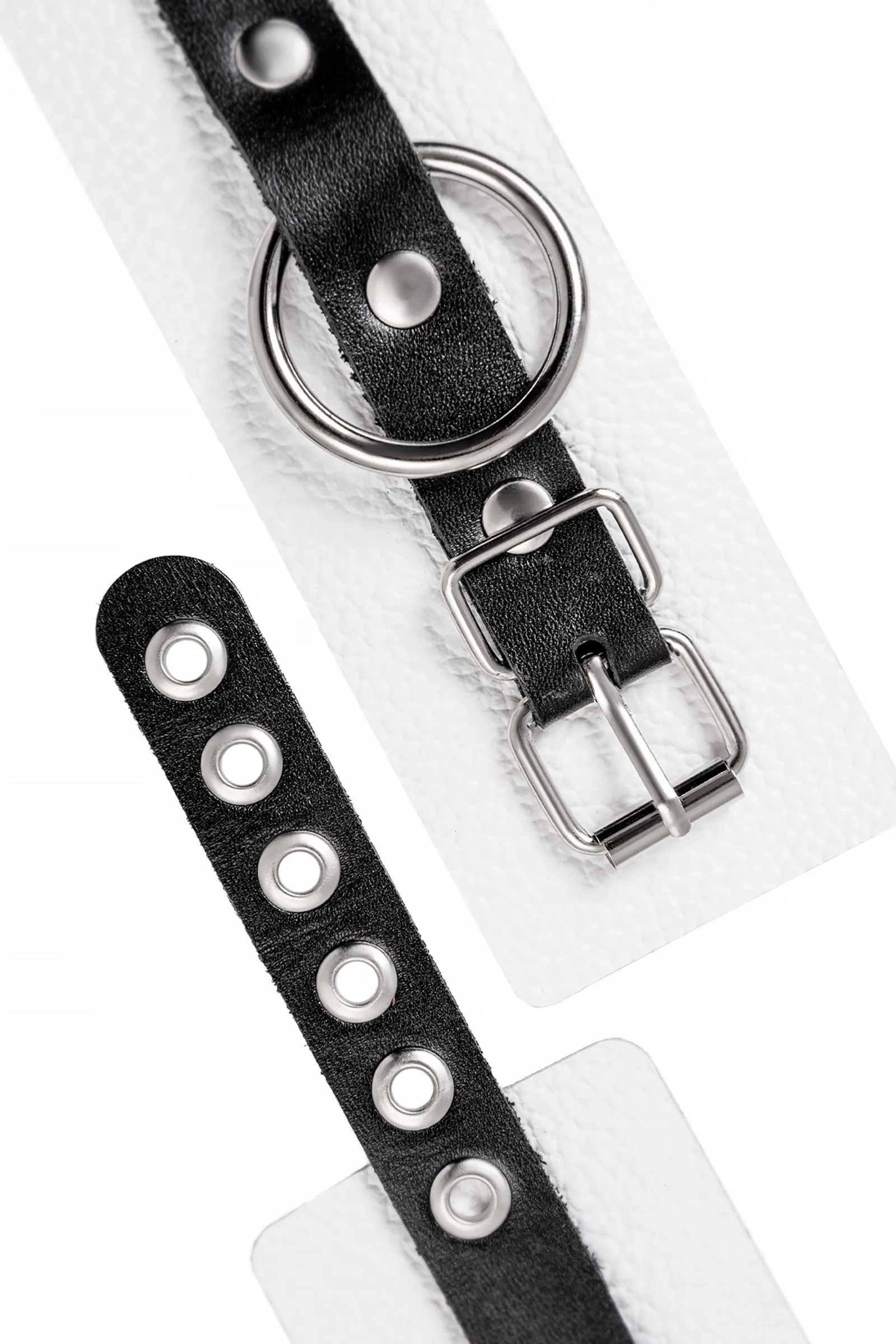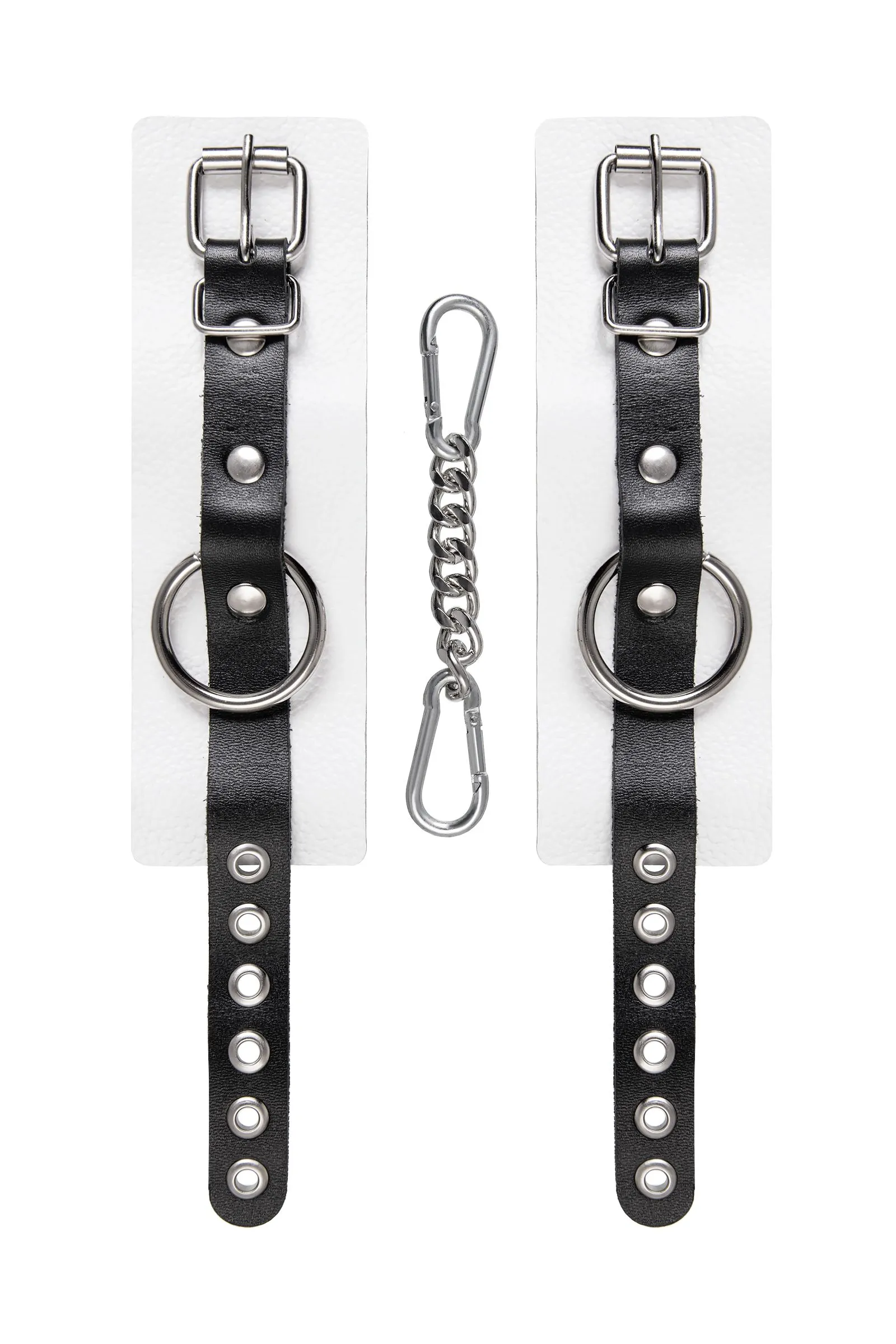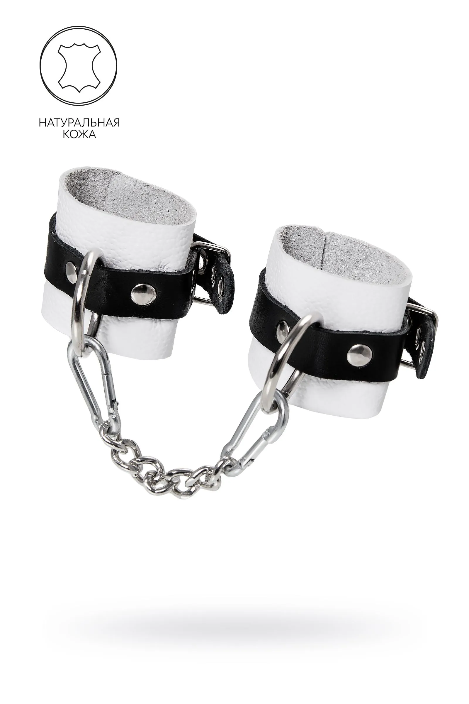 —Наручники Pecado BDSM, мягкие, с одним ремешком с люверсами, натуральная кожа, бело-чёрные