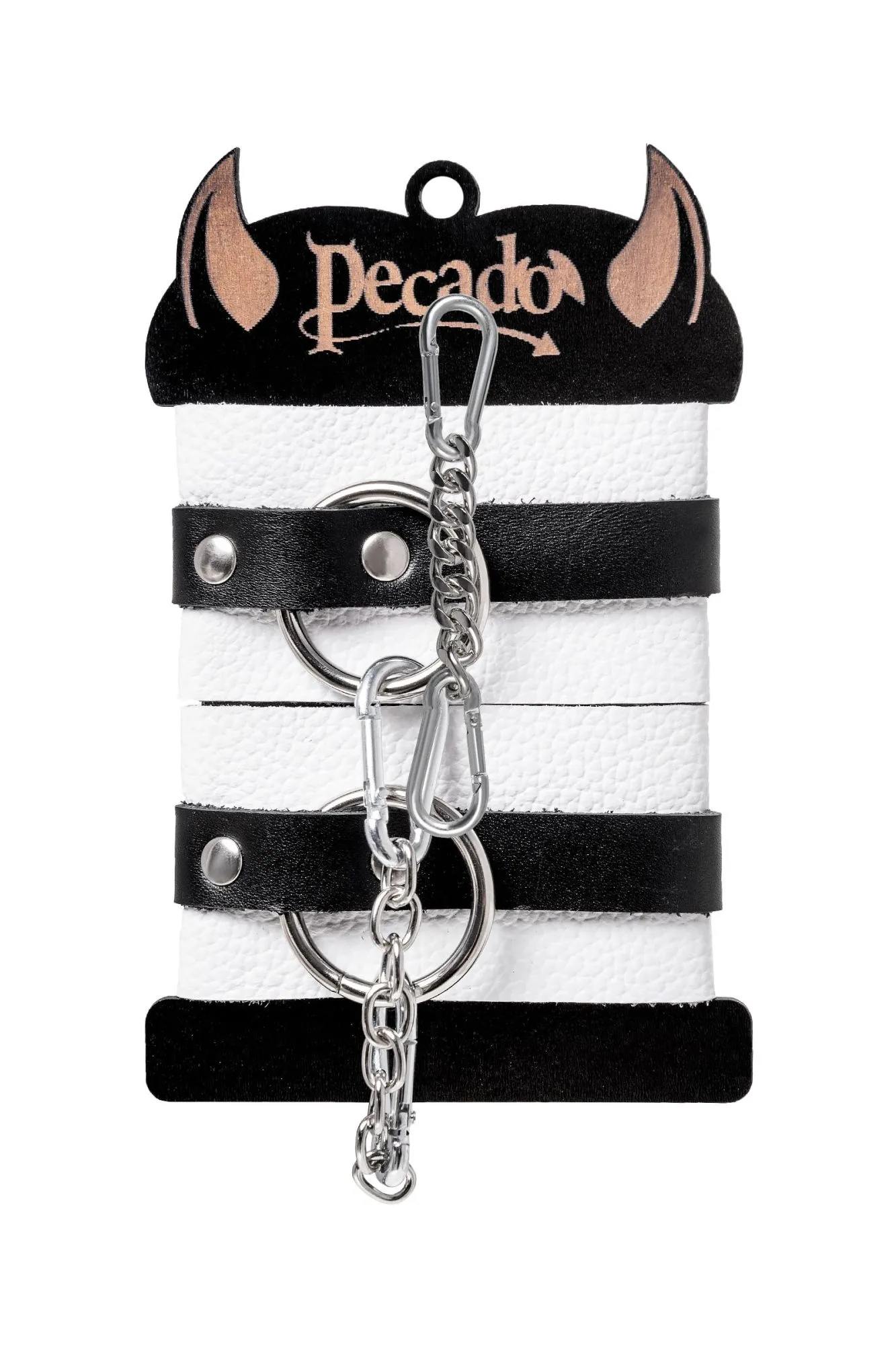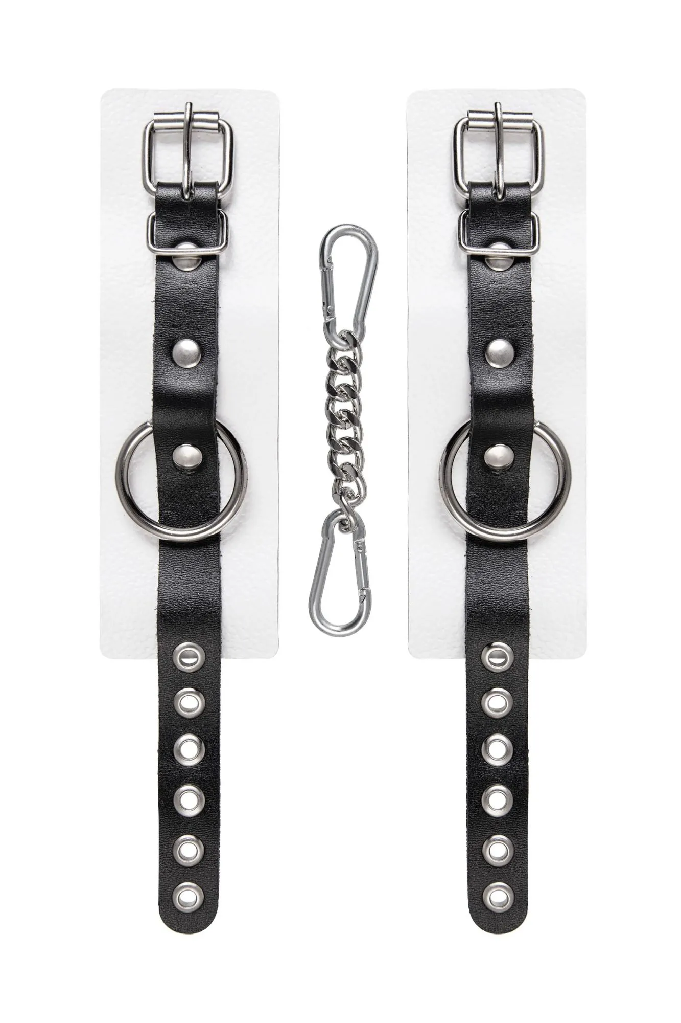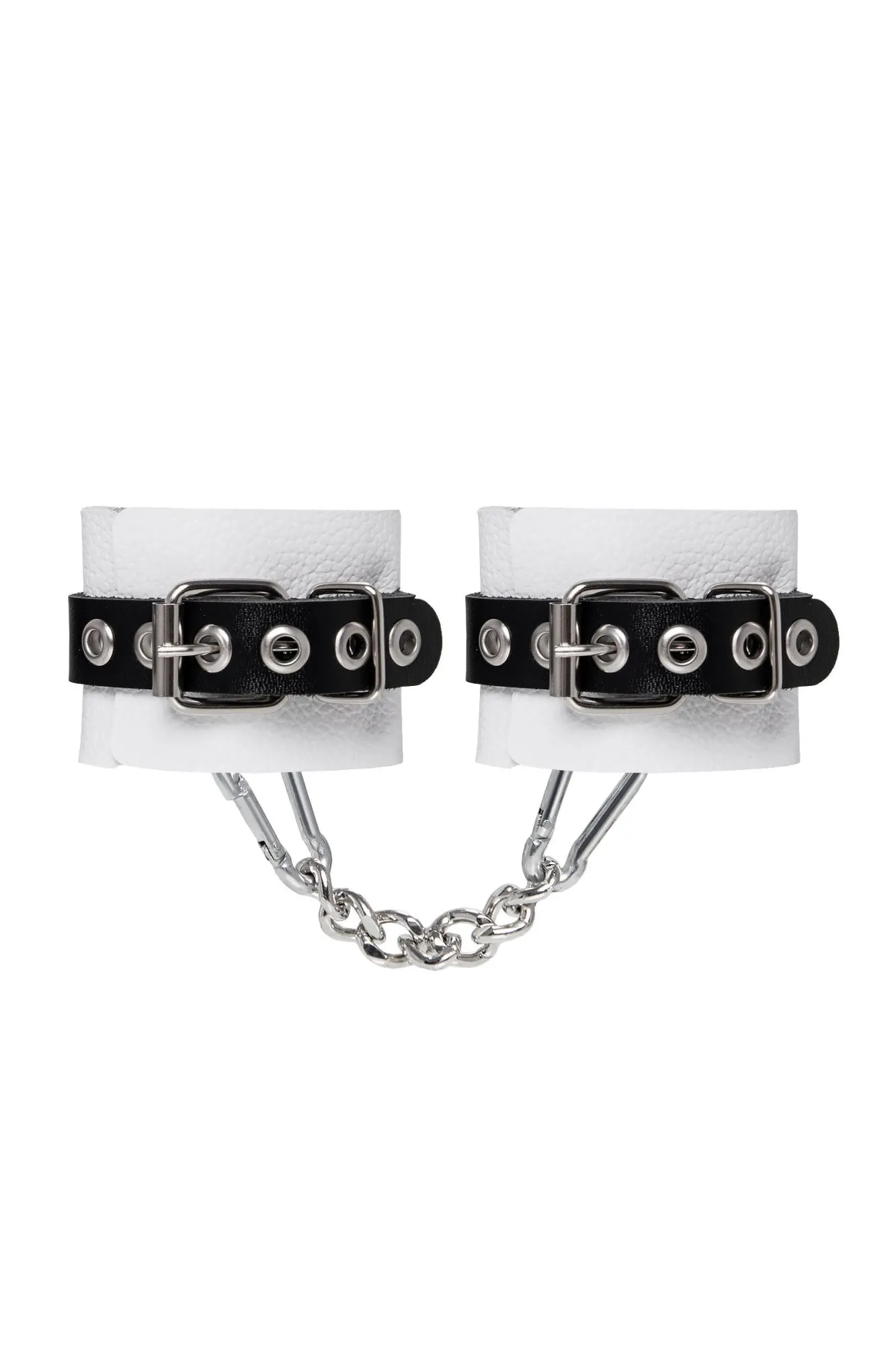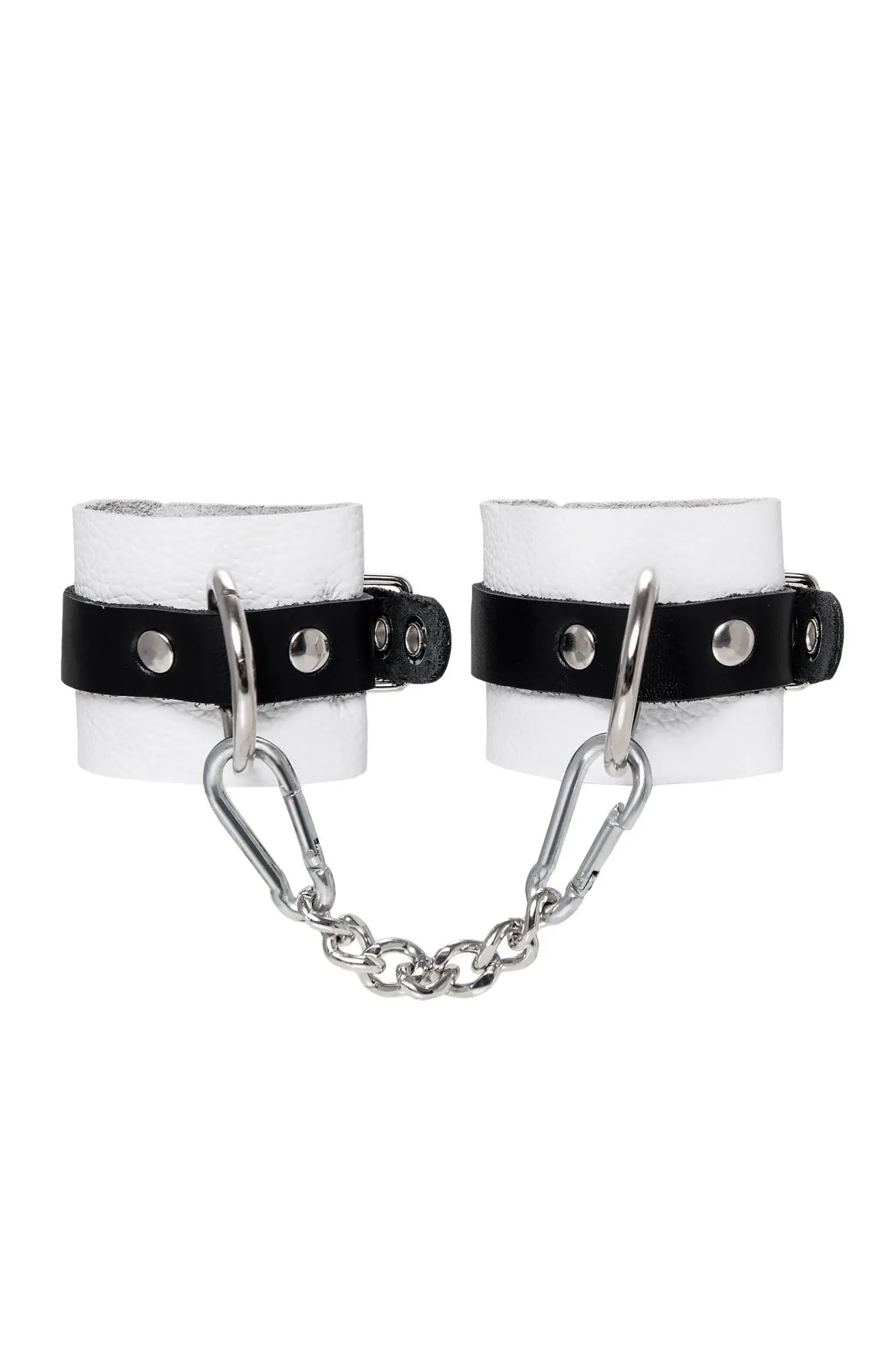 Наручники Pecado BDSM, мягкие, с одним ремешком с люверсами, натуральная кожа, бело-чёрные