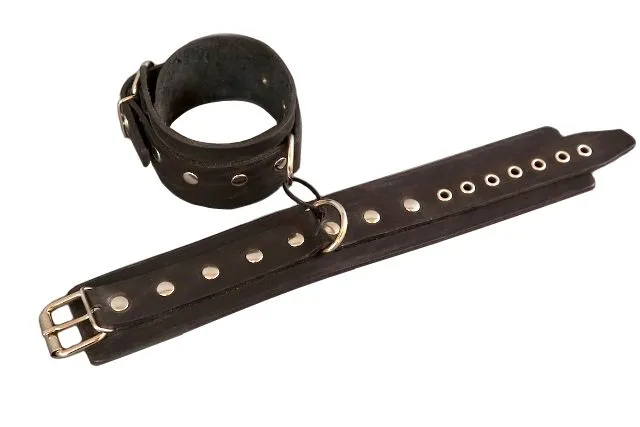 Игры подчиненных и доминантов будоражат кровь и пробуждают вожделение. Великолепные оковы от компании Подиум, выполненные из натуральной черной кожи – это стильный аксессуар, который позволит Вам обездвижить партнера и реализовать свои самые необузданные фантазии. Наручники изготовлены из натуральной кожи и декорированы рядом металлических заклепок. У них есть специальное D-образное кольцо, к которому можно будет присоединять другие бондажные аксессуары.