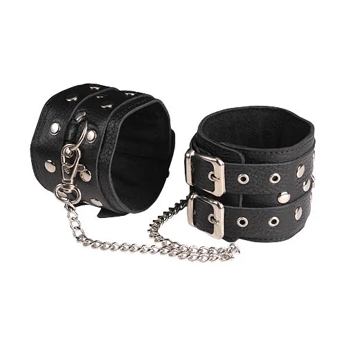 Изготавливаются из натуральной кожи с велюровой подкладой. При изготовлении использована фурнитура с никелевым покрытием. Между слоем основы и подкладой проложена мягкая прокладка. Соединяются между собой цепочкой длиной 35 см с двумя карабинами на концах. Не нарушают кровообращение, надёжно фиксируются на щиколотках с помощью двух ремешков. Размер универсальный.