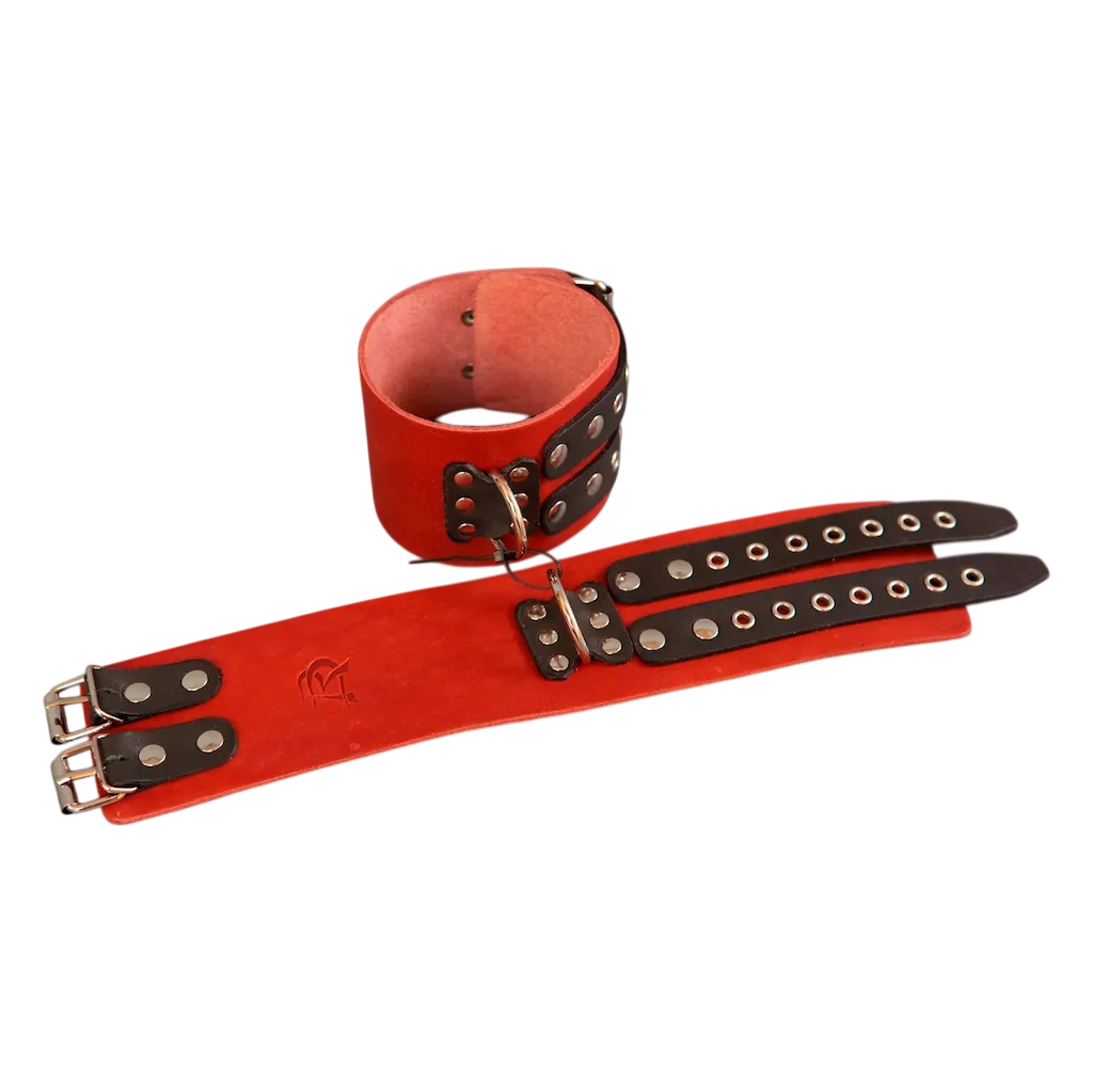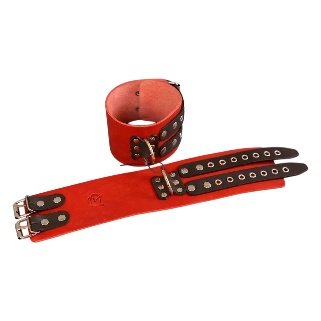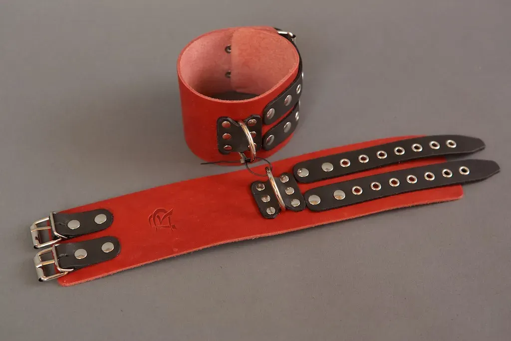 Они не нарушают кровообращение, просты в применении и обеспечивают надежную фиксацию. Данная модель изготовлена из натуральной кожи красного цвета. Наручники оснащены удобными фиксирующими ремешками, позволяющими регулировать размер наручника. Наручники без подкладки.