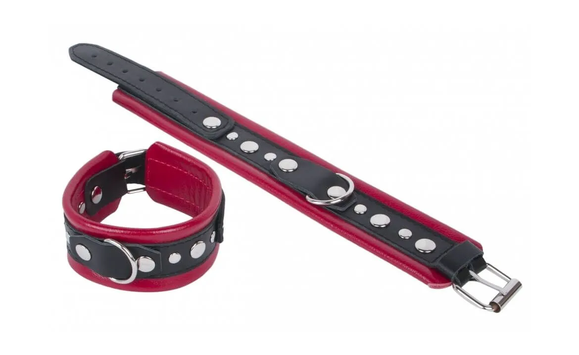 Наручники от компании Fire Horse помогут Вам сковать свою партнершу, чтобы полностью покорить ее своей воле и воплотить в жизнь все свои тайные фантазии. Ограничив подвижность рук возлюбленной, Вы сможете делать с ней все, что захотите, в том числе и исследовать новые позы. Наручники выполнены из натуральной кожи красного и черного цветов и декорированы металлическими клепками. Они отличаются завидной прочностью, способной выдержать долгий воспитательный процесс, но при этом чрезвычайно удобны, не натирают и не давят на кожу. На каждом наручнике есть D-кольцо, за которые их можно соединять между собой или же присоединить к ним другие бондажные аксессуары при помощи карабинов или стяжек.