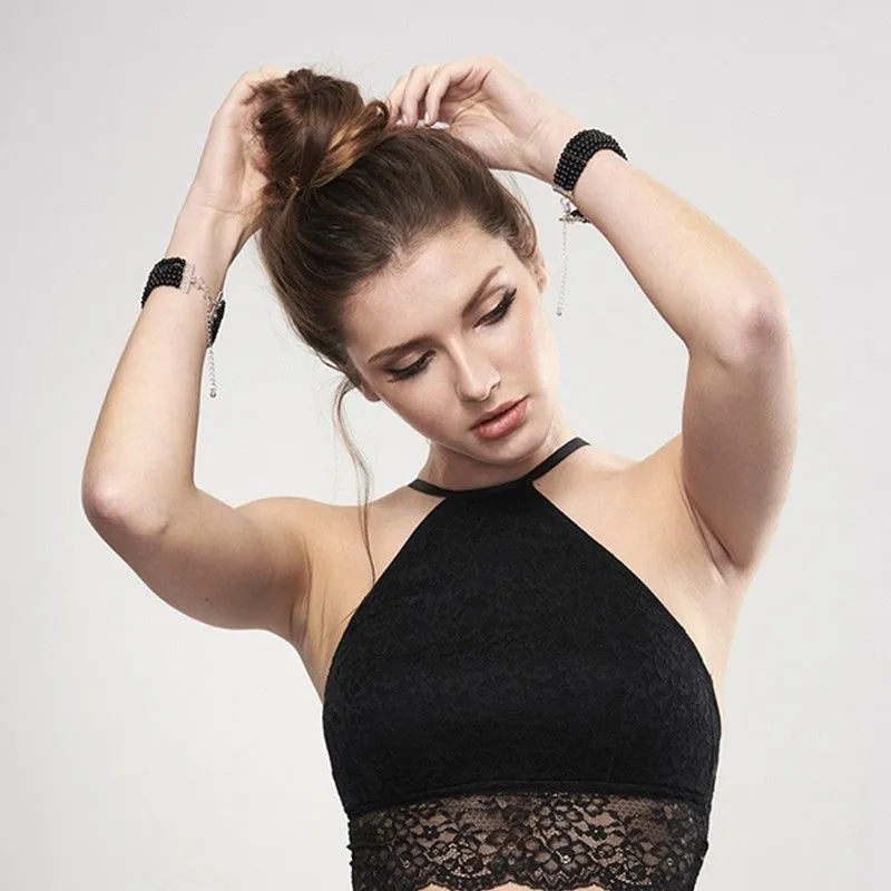 —Браслеты-наручники декоративные Bijoux Indiscrets Plaisir Nacre черный жемчуг