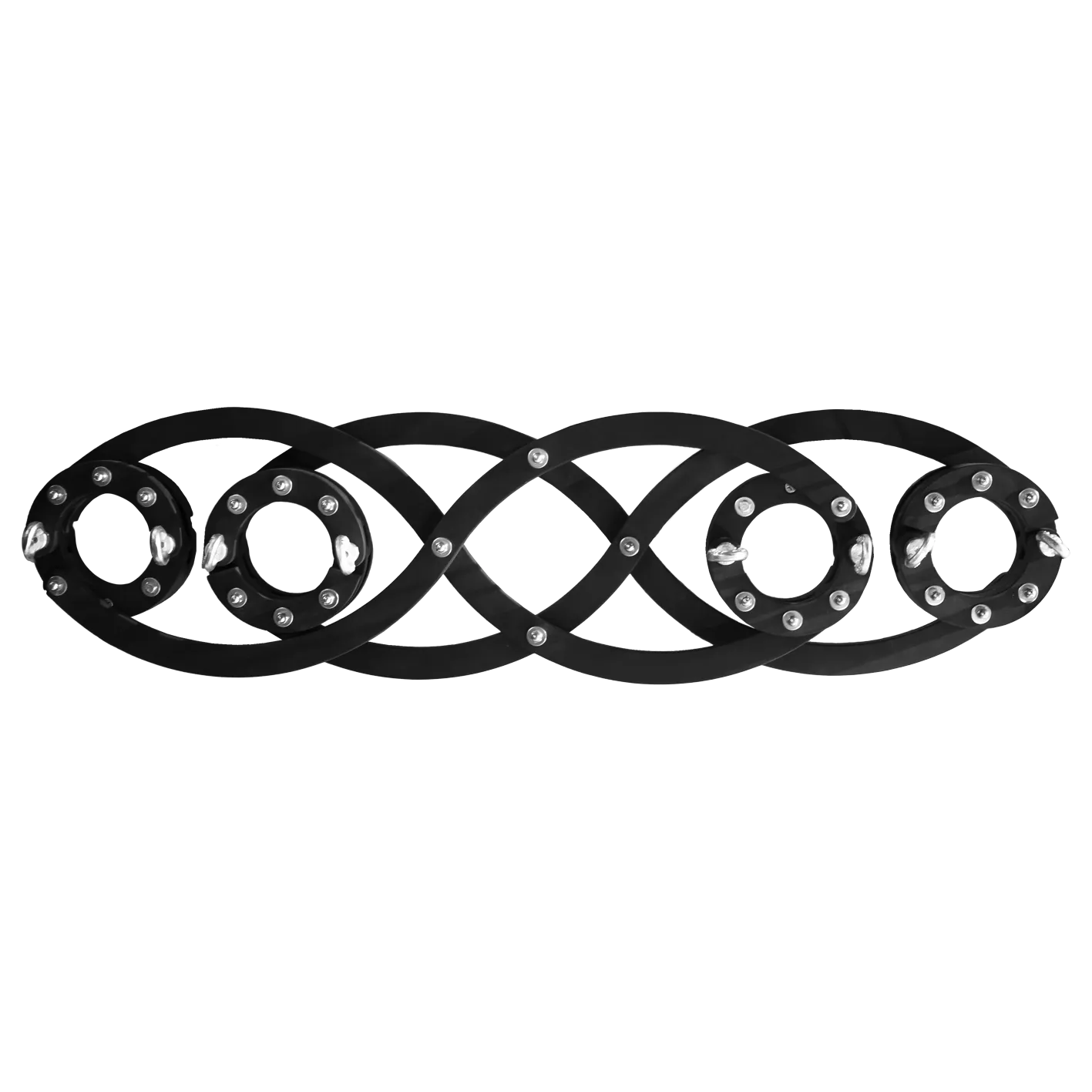 Механизм жесткой фиксации и быстрого высвобождения с возможностью закрепления на карабин или веревку к напульсникам на руках и ногах (не входят в комплект).