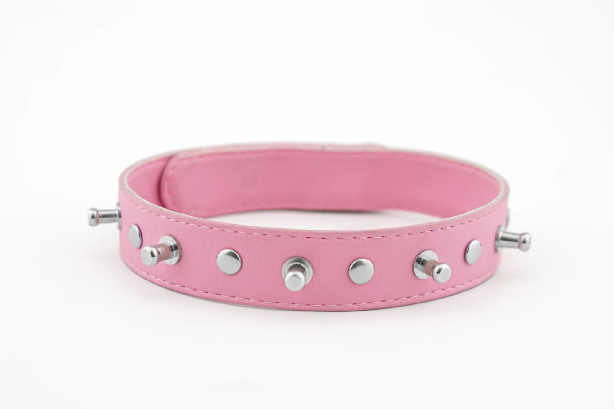 —Ошейник 69 Оттенков Розового с мет. шипами и клепками