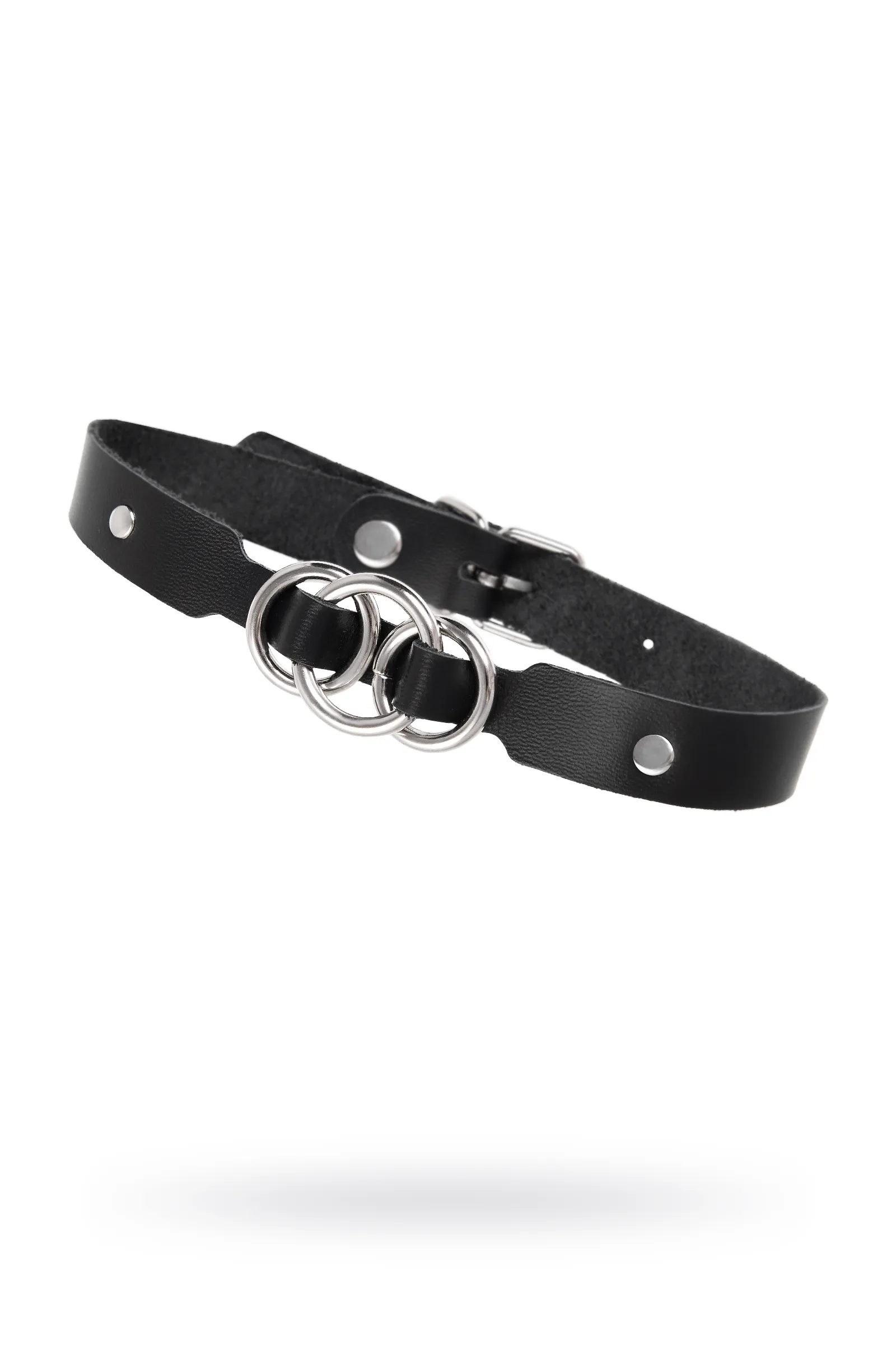 Чокер-ошейник Pecado BDSM, со связанными кольцами, натуральная кожа, чёрный