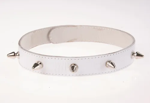 —Ошейник кожаный белый шириной 20мм с шипами длиной 12мм на кнопках 3102-3