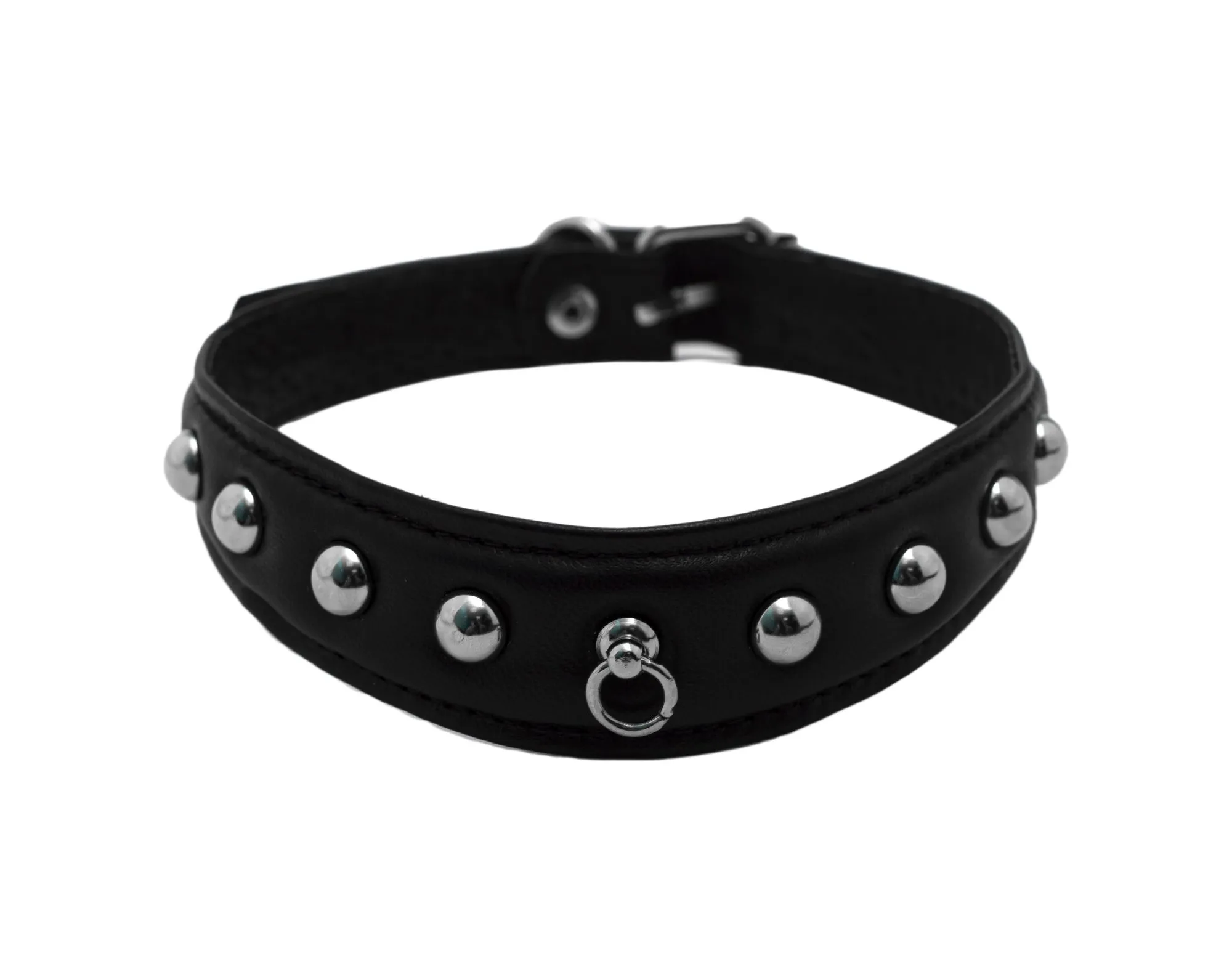 —Ошейник кожаный Подиум с шипами, чёрный