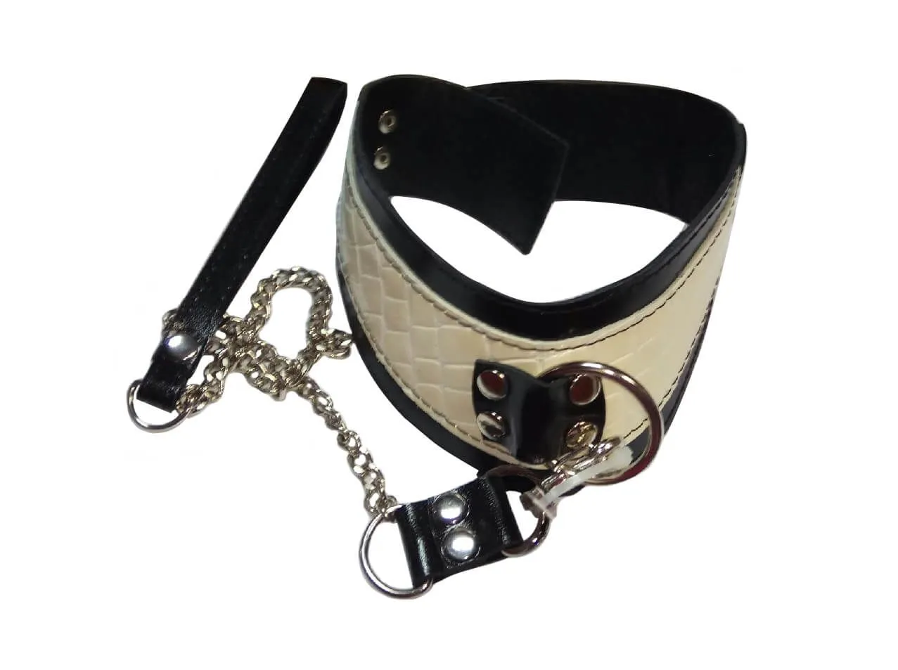 Получите полную сексуальную власть над своим партнером, ограничив его свободу этим невероятным комплектом от компании Индиго, в который входит фигурный ошейник и поводок на цепи. Поводок пристегивается к кольцу на ошейнике с помощью карабина. Вы сможете направлять движения своего партнера при помощи поводка или же одергивать его при плохом поведении. Подчините партнера своим желаниям или подчинитесь ему сами с этим великолепным аксессуаром.