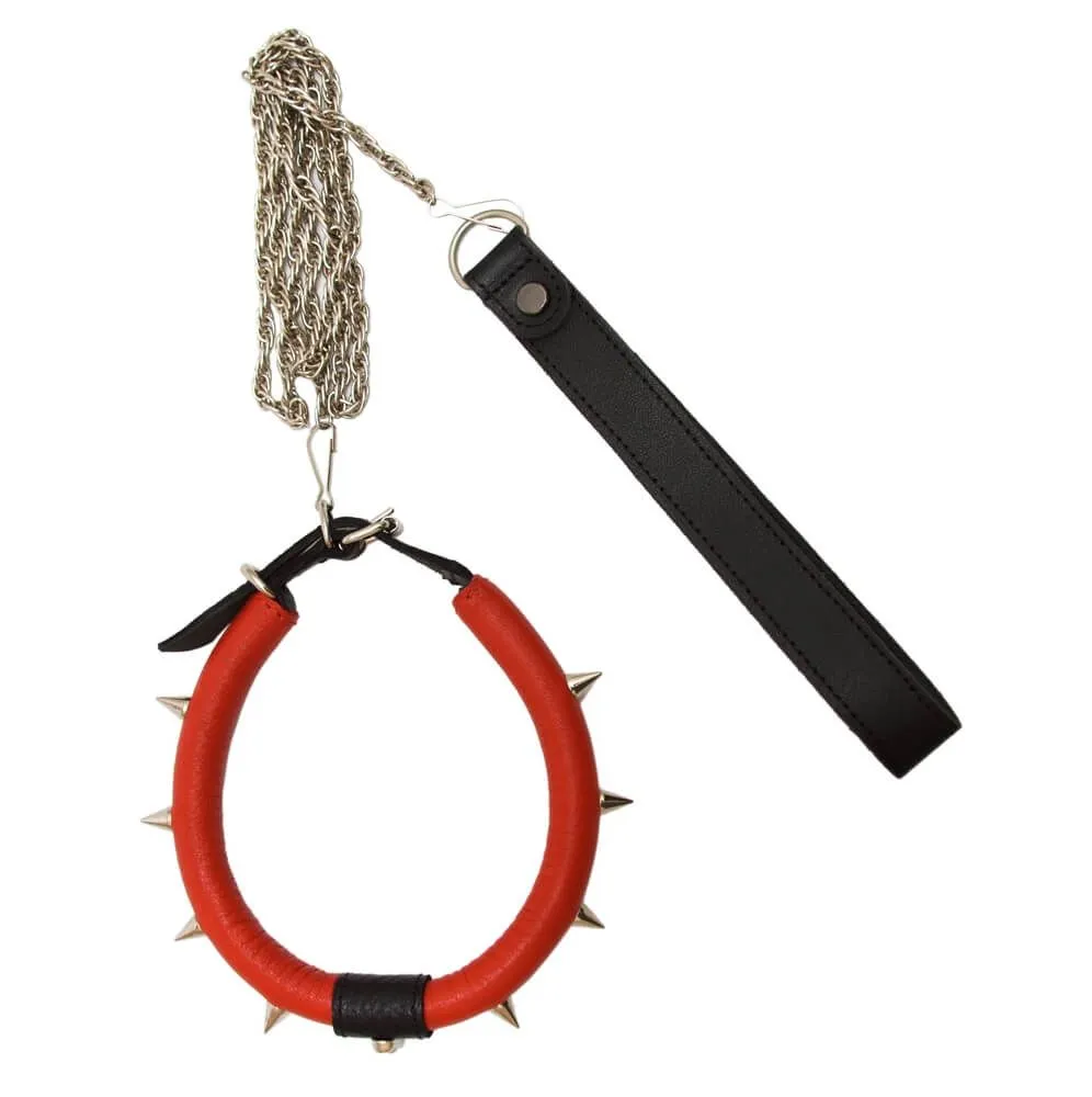 Ошейник c шипами с поводком, красный