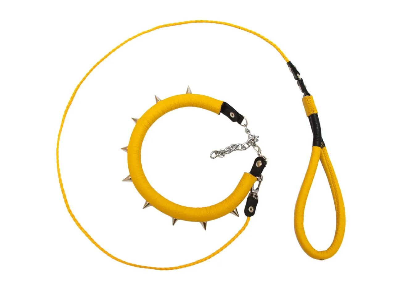 —Ошейник c шипами с поводком, желтый