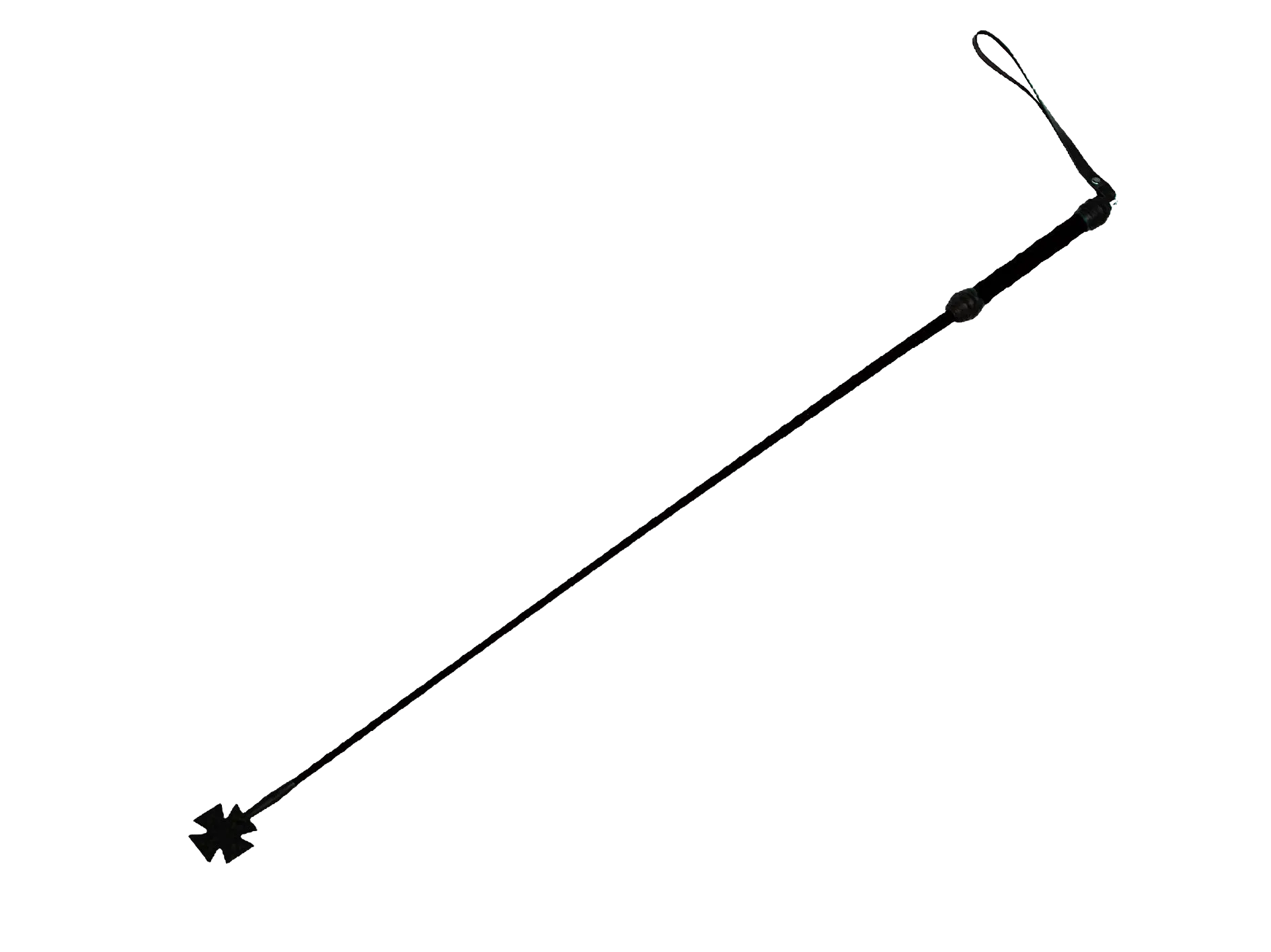 БДСМ стек длиной 850 мм состоит из гибкой основы, овитой натуральной кожей черного цвета, наконечника и удобной рукояти с петлей для надевания на руку (темляк). Стек по своему действию похож на БДСМ розги и ротанговыми тростями(прутьями). Удобство этого ударного в том, что его можно применять и как гибкий девайс. Работать наконечником нужно аккуратно, чтобы не травмировать тело обмоткой, посредством которой он крепится к основной части стека. Еще одно применение стека это частое использование его в качестве указки. Этот девайс часто применяется в психологических играх в доминирование в качестве указки – своеобразного «пульта управления».