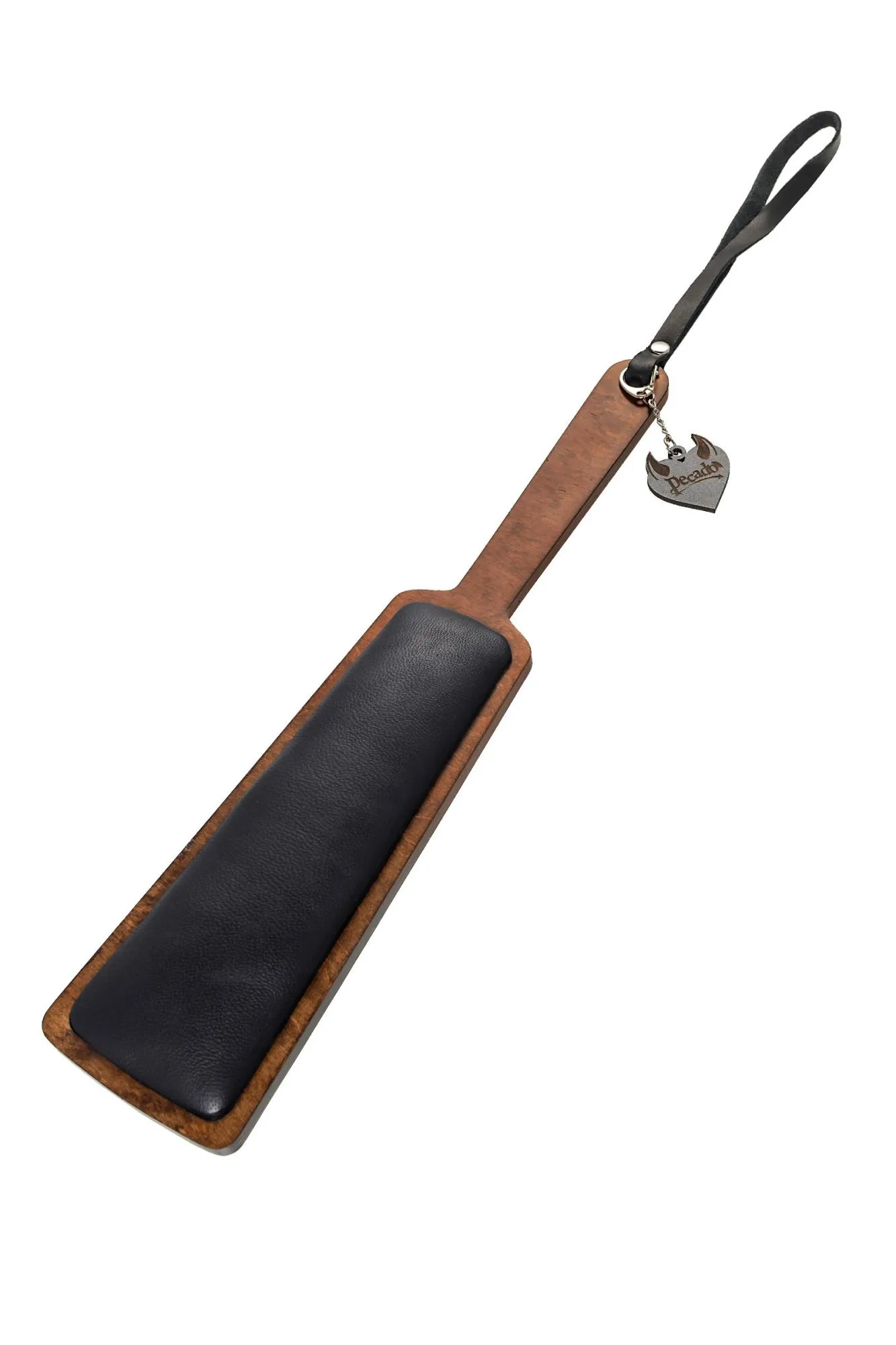 —Паддл Pecado BDSM, прямоугольный с мягкой подушечкой, натуральная кожа и дерево, чёрный