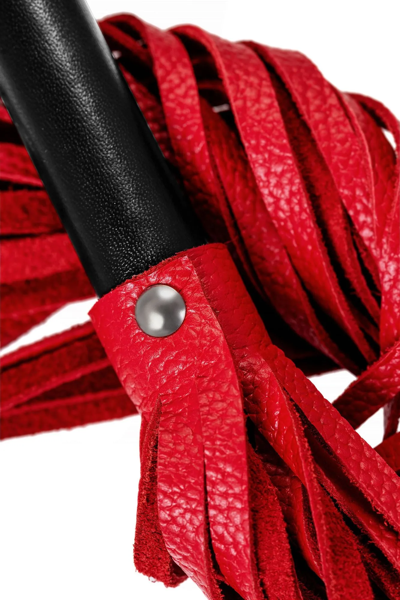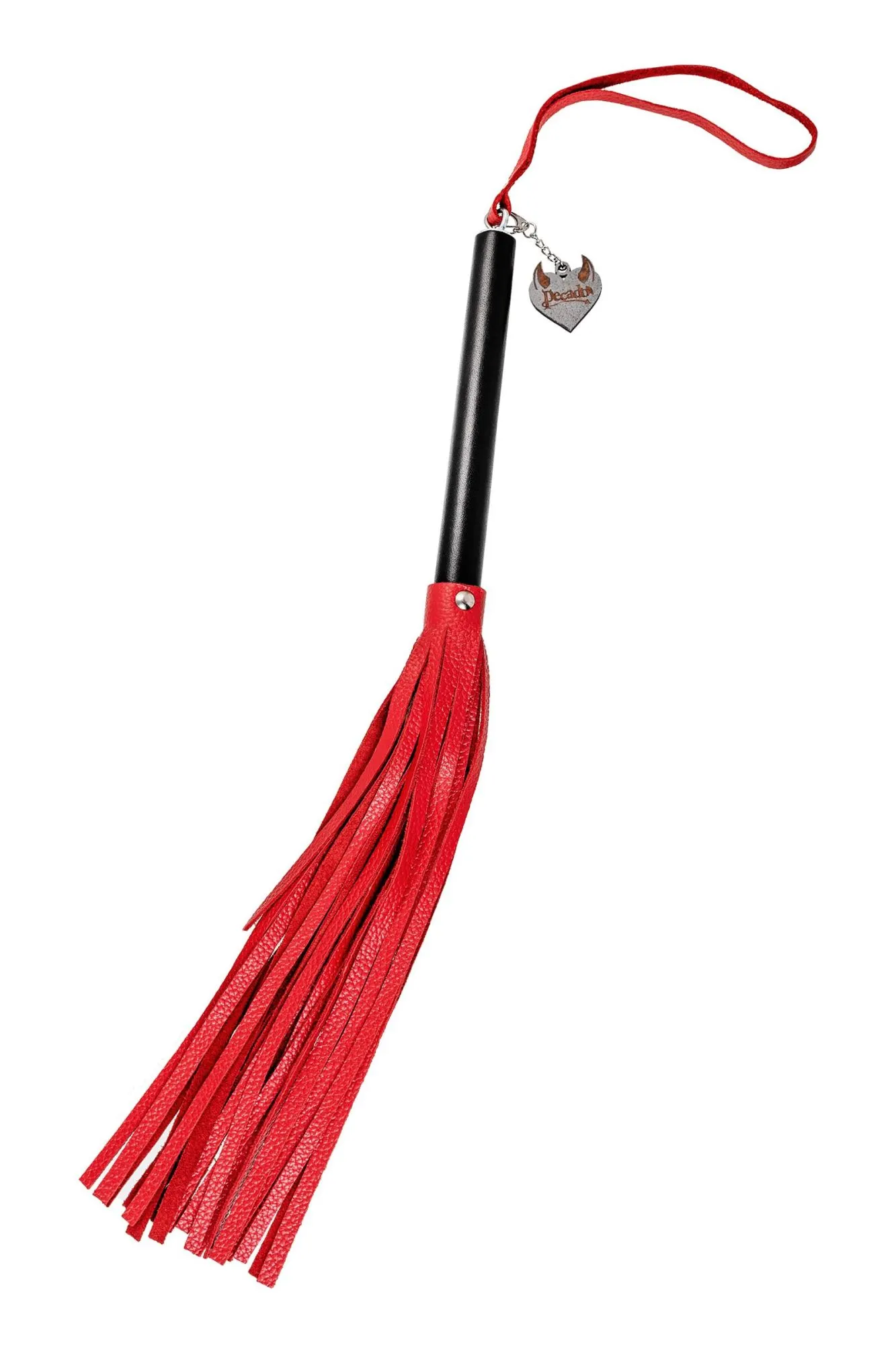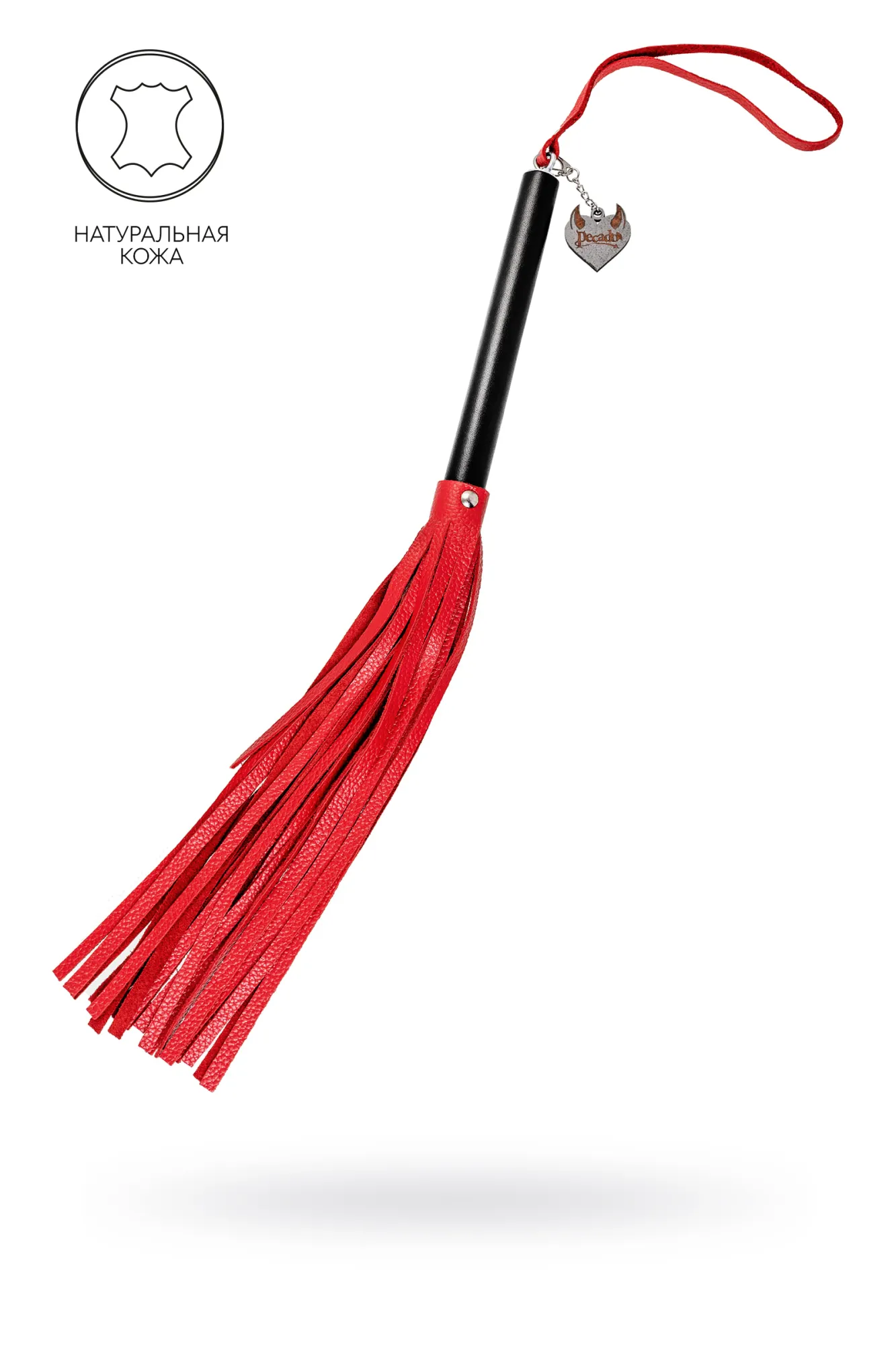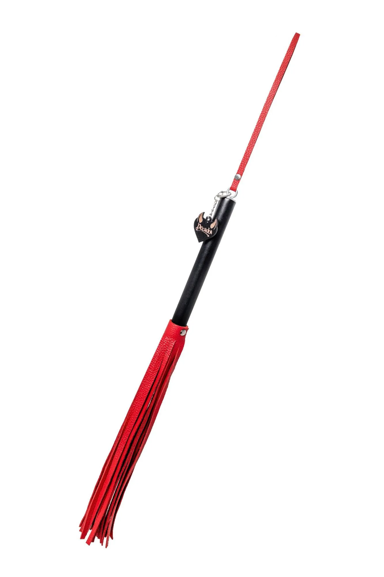 —Плеть Pecado BDSM, чёрная рукоять, красные хлысты, натуральная кожа