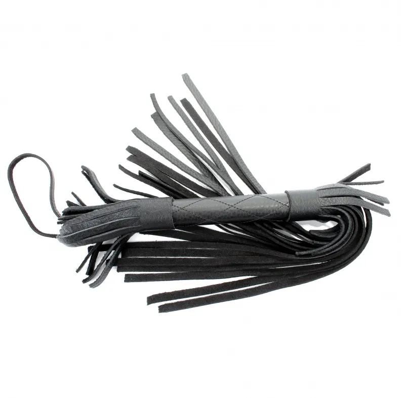 Аккуратная черная плетка, изготовленная из натуральной кожи. Имеет жесткую ручку длиной 17 см, так же покрытую кожей. Имеется петля для удобного использования плети. Длина хлыстов - 27 см. Общая длина плети - 51 см.
