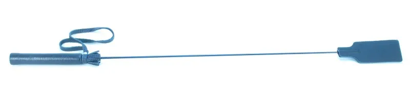 Стек сделан из прочного сердечника с оплетением из кожи. Наконечник в виде хлопушки из кожи для осуществления ударов. Также на ручке присутствует кожаная петля, которая позволяет закрепить стек при проведении наказания партнёра. Девайс отлично подходит для БДСМ игр. Мягкая и гибкая конструкция позволяет избежать повреждений тела даже при сильных ударах. Характеристики: длина БДСМ девайса составляет 65,5 см, хлопушка сделана из подшитой кожи, шириной 4 см, длиной 11 см, рукоятка стека жёсткая, обшита кожей и имеет петлю для фиксации, страна - Россия.