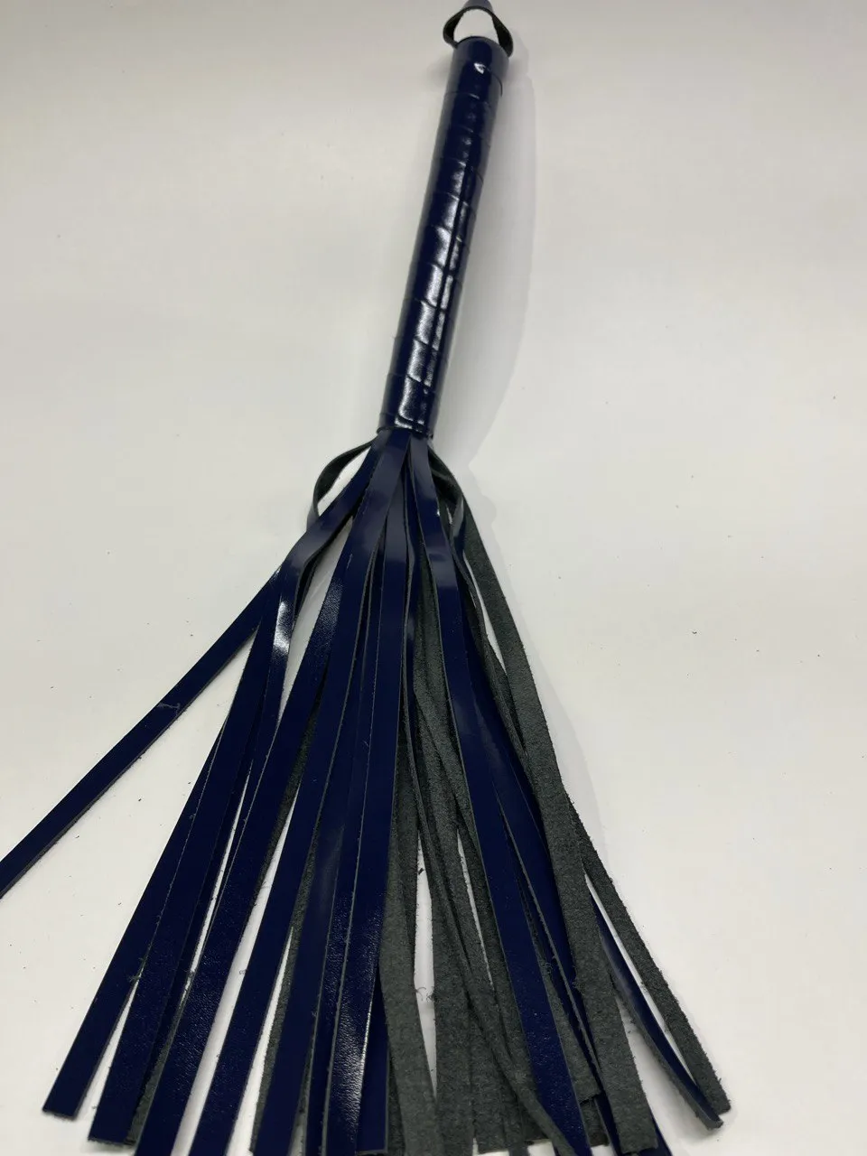 Ручка из кожи удобно лежит в руке. Мягкие замшевые хвосты могут послужить для мягкого поглаживания в качестве прелюдии, или для разогрева, порка получится мягкой, но ощутимой. В чьих руках эта плетка, тот и устанавливает правила.