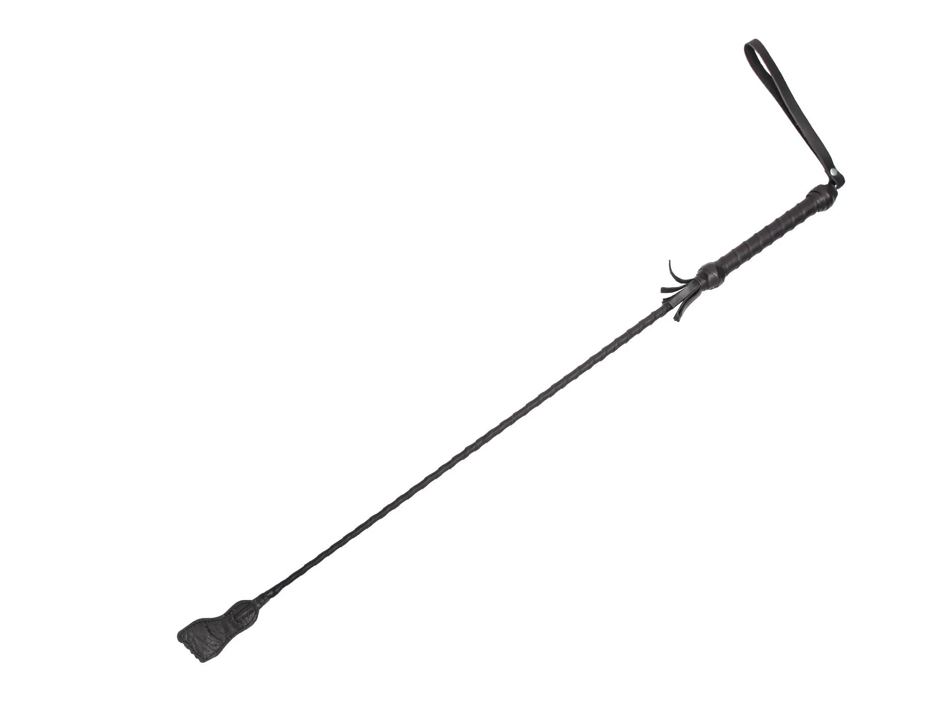 Этот стек состоит из гибкой основы, овитой натуральной кожей черного цвета, наконечника длиной 10 см и удобной рукояти с петлей для надевания на руку. Данный аксессуар для игр BDSM возможно применять для ласковых поглаживаний, чтобы разогреть партнера, или для более ощутимых ударов. Каждый удар этого девайса будет нежно бить по коже и разносить удар по всему телу, отдаваясь приятными возбуждающими волнами. Также использовать этот длинный стек можно и в качестве указки. Развлечения с элементами BDSM отлично разнообразят сексуальные игры с партнером, сделав их насыщеннее и ярче!