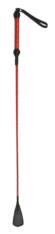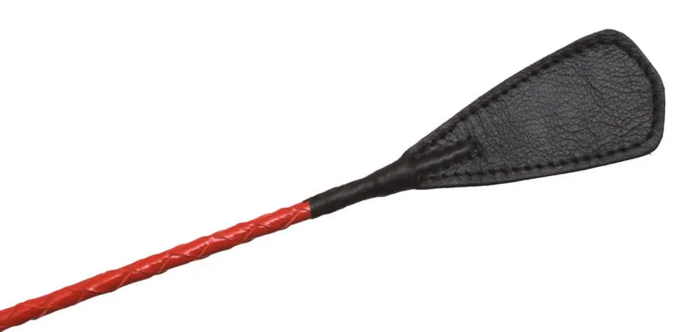 Стек длиной 70 см состоит из гибкой основы, овитой натуральной лаковой кожей красного цвета, наконечника в виде хлопушки длиной 10 см и удобной рукояти с петлей для надевания на руку. Осторожно наносите удары, чтобы не повредить кожу узлом, с помощью которого наконечник крепится к телу стека.