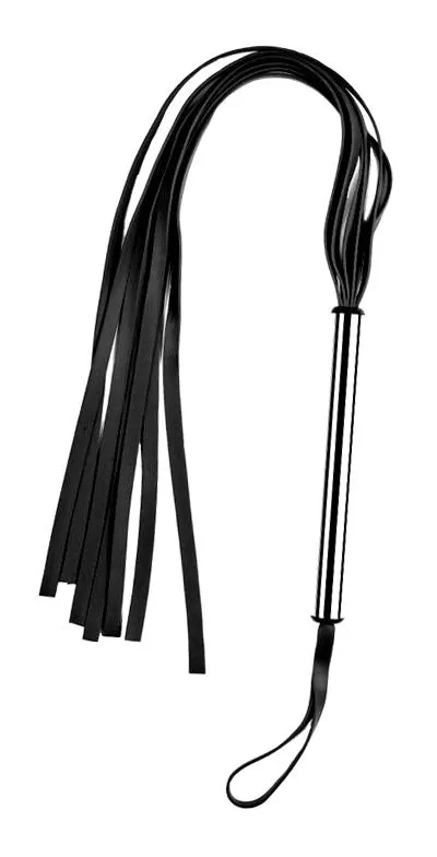У данного аксессуара для БДСМ игр длинная тонкая рукоятка из металла, на одном конце которой расположена петелька для руки, а на другом множество кожаных хвостиков. Рукоять из никелированной трубки хорошо ложится как в мужскую, так и в женскую руку, а благодаря петле для запястья флогер точно не выпадет у Вас из рук. С помощью флогера Вы сможете устроить хорошую порку или же ласково погладить тело партнера либо партнерши. Так как полосы этого флогера мягкие, его будет безопасно использовать даже при сильных ударах. Если Вы предпочитаете жесткие игры, Вам точно понравится эта игрушка!