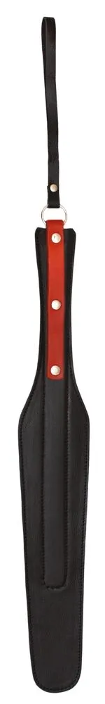 Спанкер от компании "Подиум" выполнен в виде большой лопатки из черной натуральной кожи, а его рукоять декорирована металлической фурнитурой и вставкой из красной кожи. Благодаря пружинящей вставке из полимерного материала этот спанкер достаточно гибкий. Вы сможете использовать его, нанося удары по ягодицам или верхним мышцам внутренней стороны бедра своего партнера. Пробуйте применять различную силу удара, чтобы приласкать своего партнера или, наоборот, наказать его.