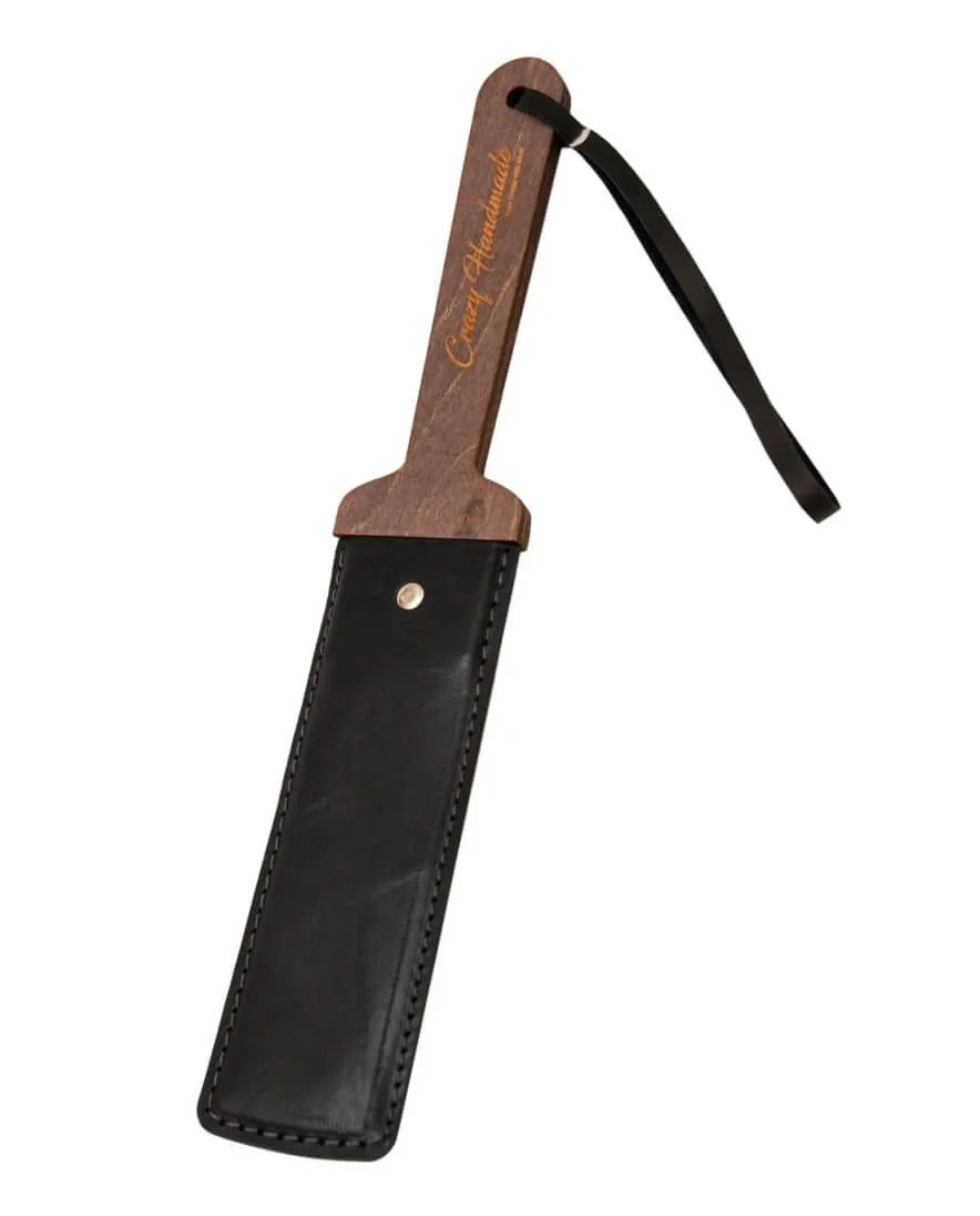 Эта шлепалка представляет собой твердый паддл, выполненный из натуральной кожи черного цвета и дерева. С таким девайсом Ваши игры с элементами БДСМ станут еще более страстными и полными острых ощущений. Отшлепайте своего партнера, нанося ощутимые удары, чтобы показать ему его место и заставить повиноваться. Или же поощрите его нежными поглаживаниями за хорошее поведение. На ручке имеется кожаная петелька для запястья, благодаря которой паддл не выскользнет из Ваших рук.