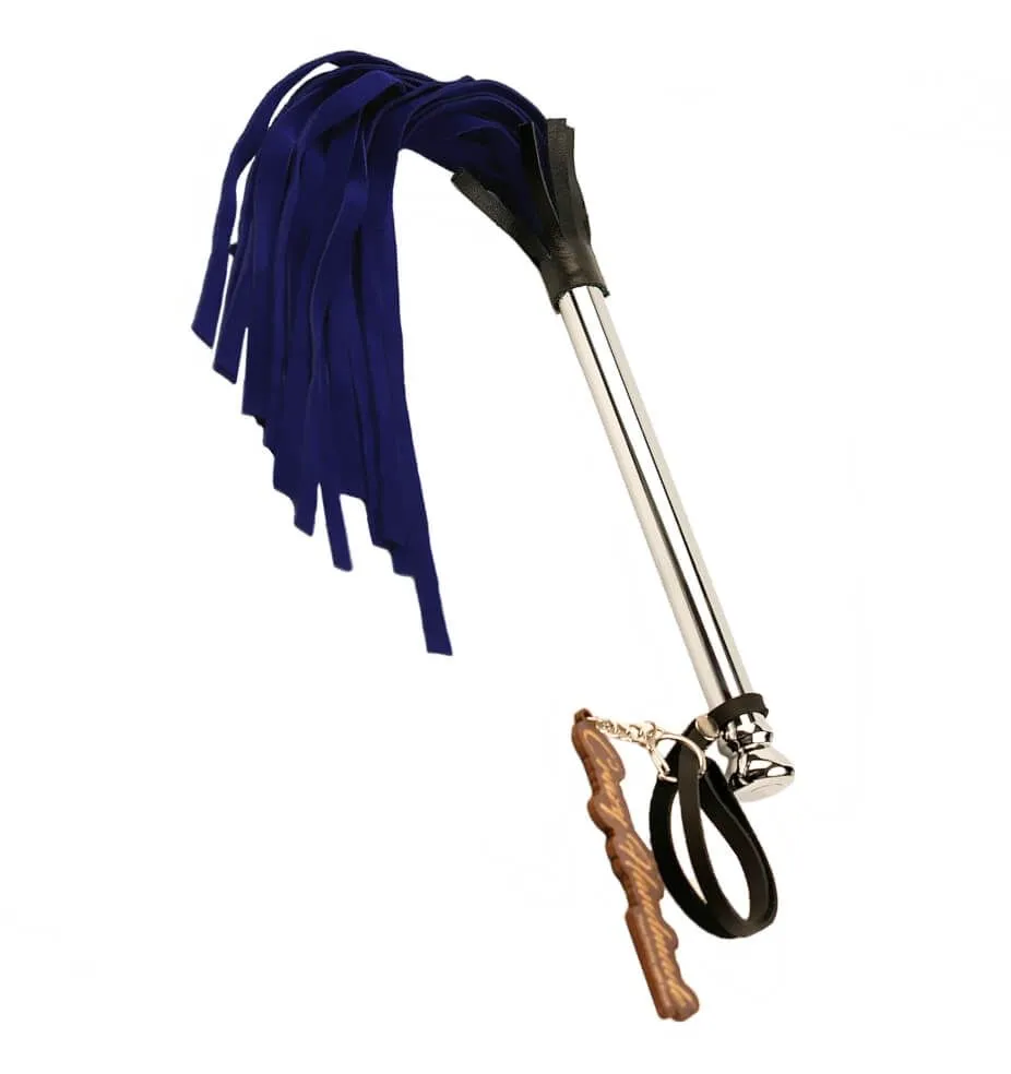 Плеть выполнена из натурального велюра синего цвета, а ручка - из гладкого металла серебристого цвета. На ручке имеется кожаная петелька для запястья, благодаря которой плеть не выскользнет из Ваших рук.