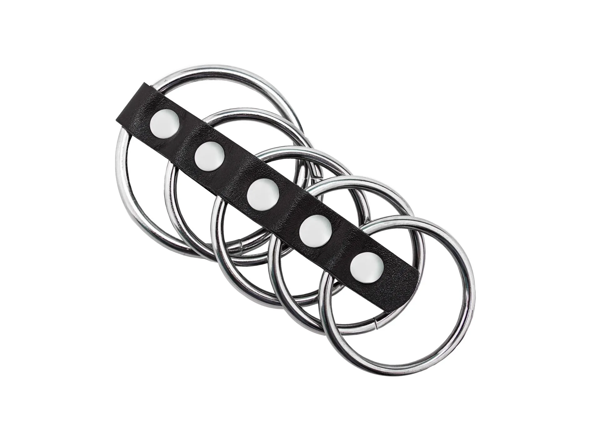 Эта металлическая сбруя от компании Подиум, состоящая из соединенных кожаной сцепкой пяти металлических колец, надевается на пенис и мошонку. Если Вы приверженец БДСМ или просто любите сексуальные эксперименты, Вам обязательно понравится этот возбуждающе-агрессивный аксессуар. Черный мини-обруч плотно облегает половой член и исполняет функцию барьера для оттока крови, а это значит, что эрекция будет длительной, и Вы сможете наслаждаться сексом значительно дольше. Испытайте совершенно новые будоражащие все Ваши чувства ощущения!