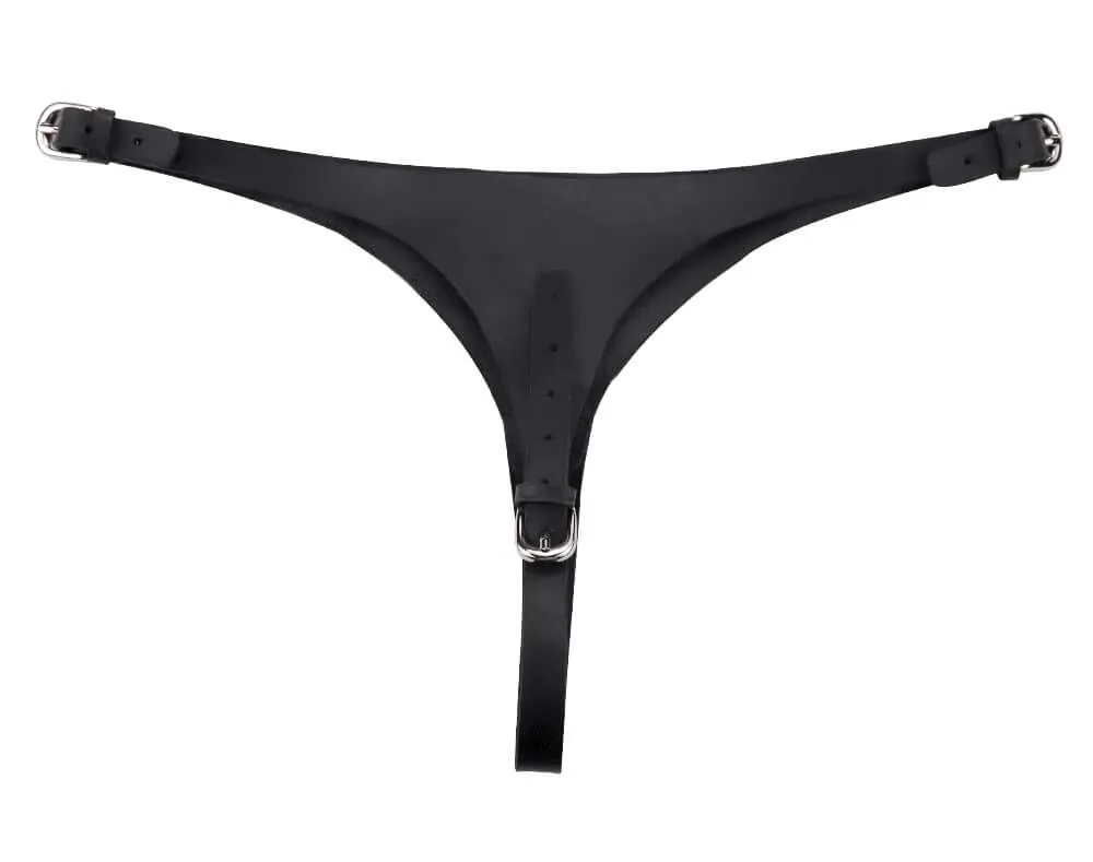 Спереди трусики надежно прикрывают самые интимные места, однако сзади почти полностью оголяют ягодицы. Они регулируются тремя ремешками с пряжками по бокам и в промежности, поэтому их можно будет подогнать под нужный размер.
