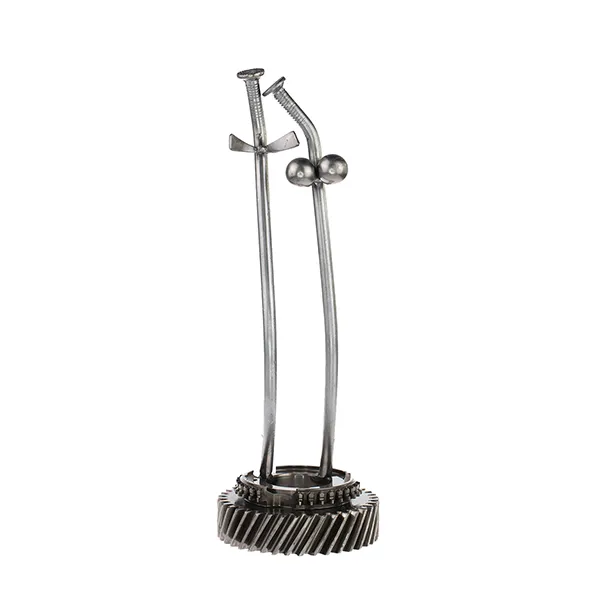 Совершенные в своём несовершенстве, с первого взгляда просто гвозди и странные металлические детальки. Но их хочется рассматривать. И тогда всё становится ясно: это экстравагантная эротическая статуэтка, выполненная полностью из металлических строительных материалов - гвоздей, гаек, шурупов, шариков от подшипников.