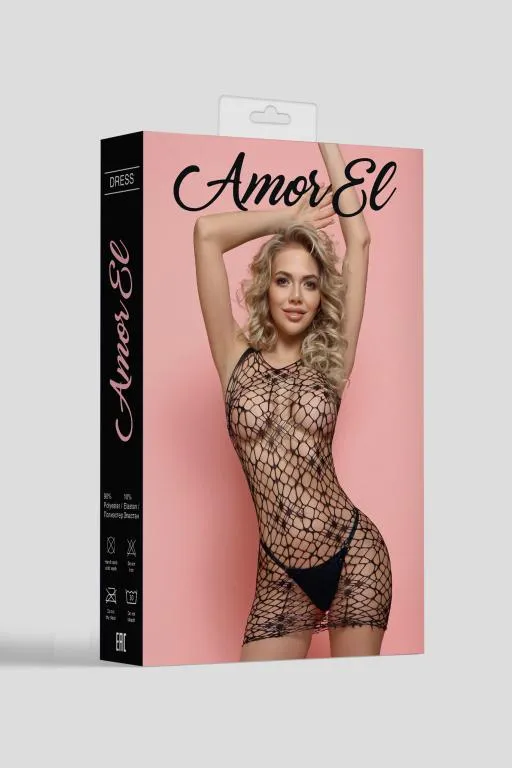 Эротическое мини-платье на бретелях. Оно имеет очень сексуальный рисунок в крупную сетку в виде паутины. Благодаря использованию большего количества нейлона, белье сохраняет очертания, не деформируется, растягивается и выгодно облегает фигуру. А за счет эластана, даже после сильного растяжения, оно не деформируются, и всегда принимает исходную форму.