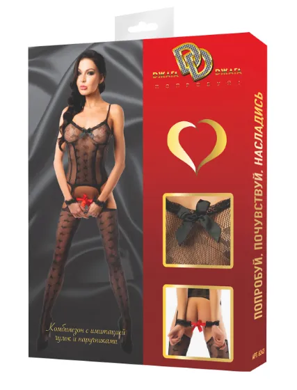—Комбинезон с имитацией чулок, черный