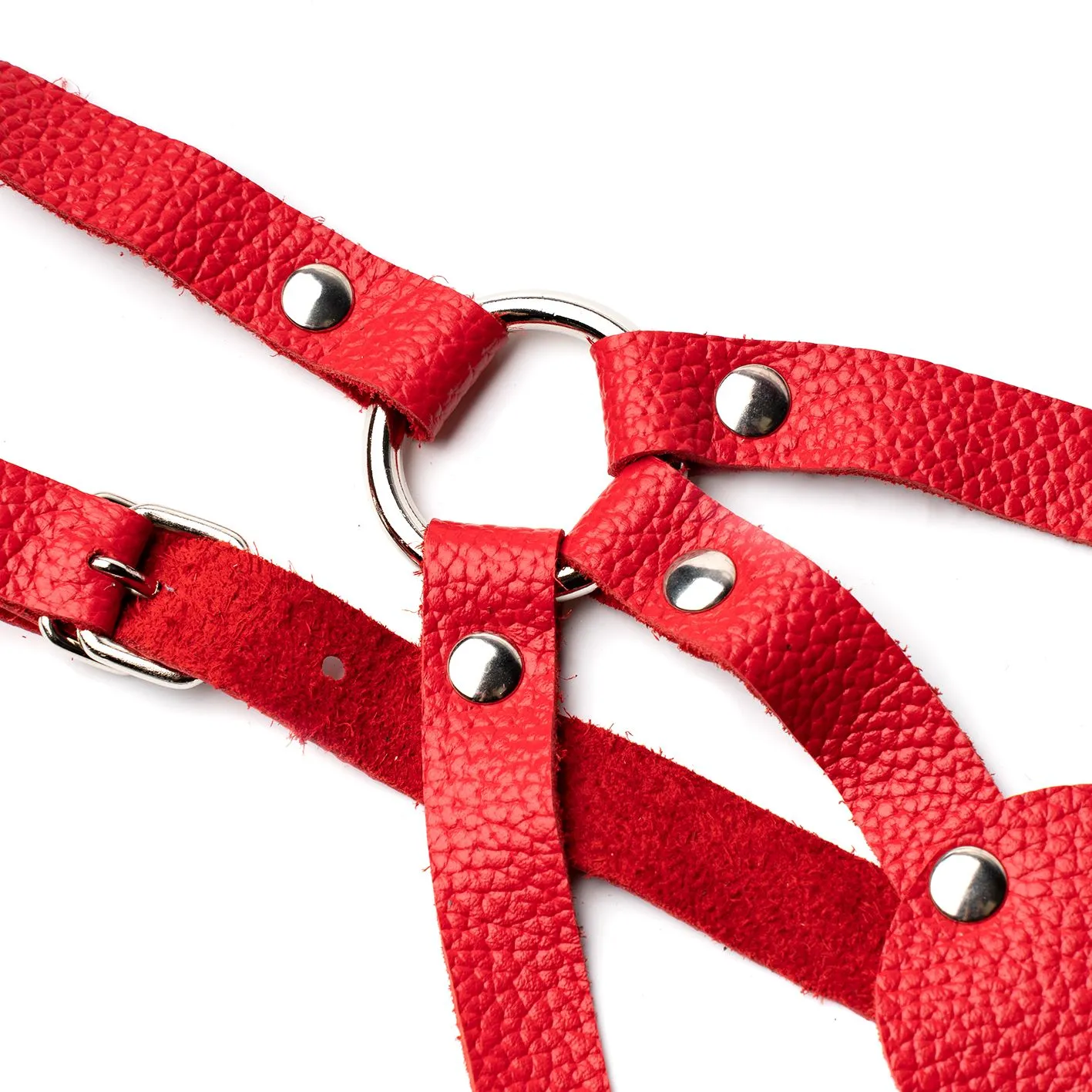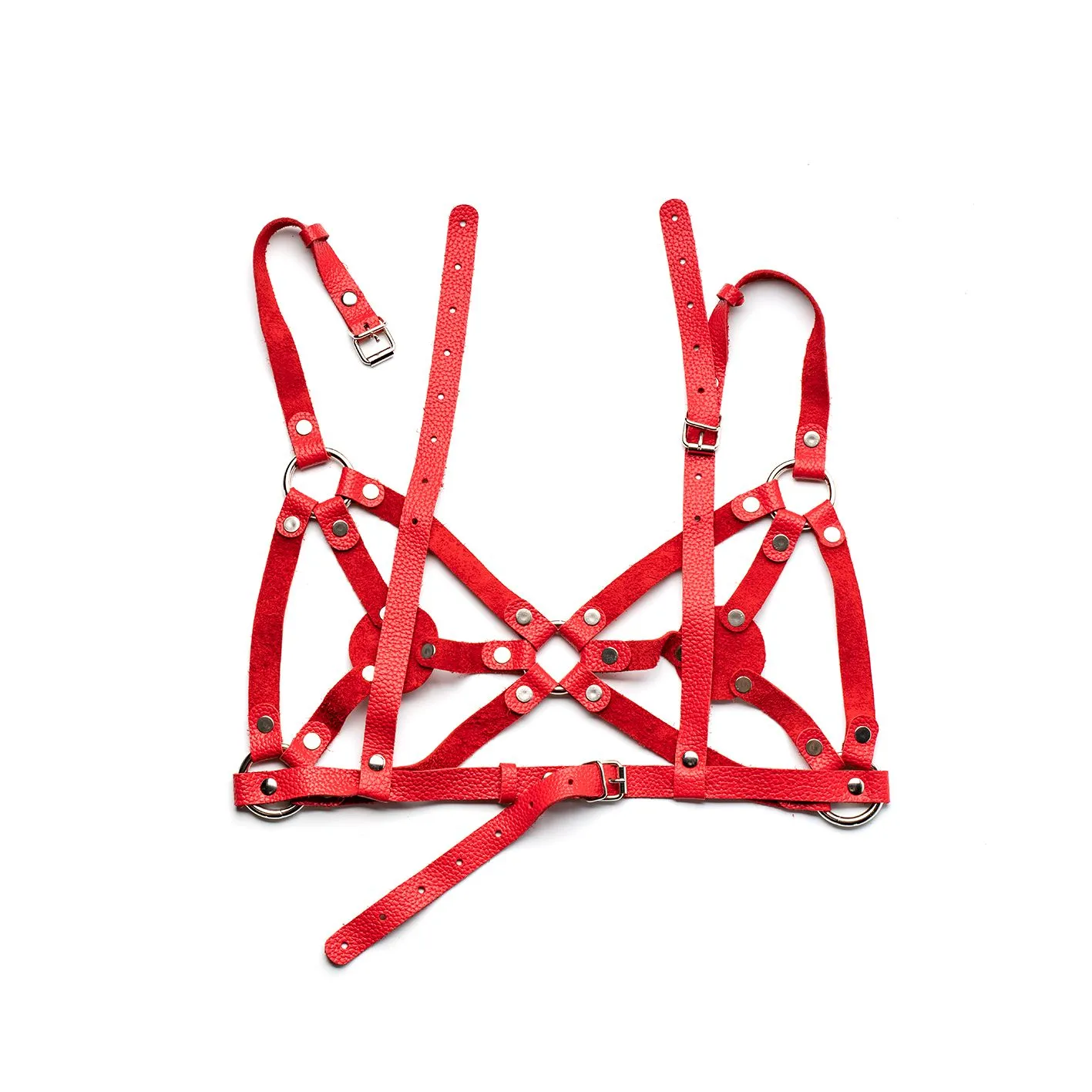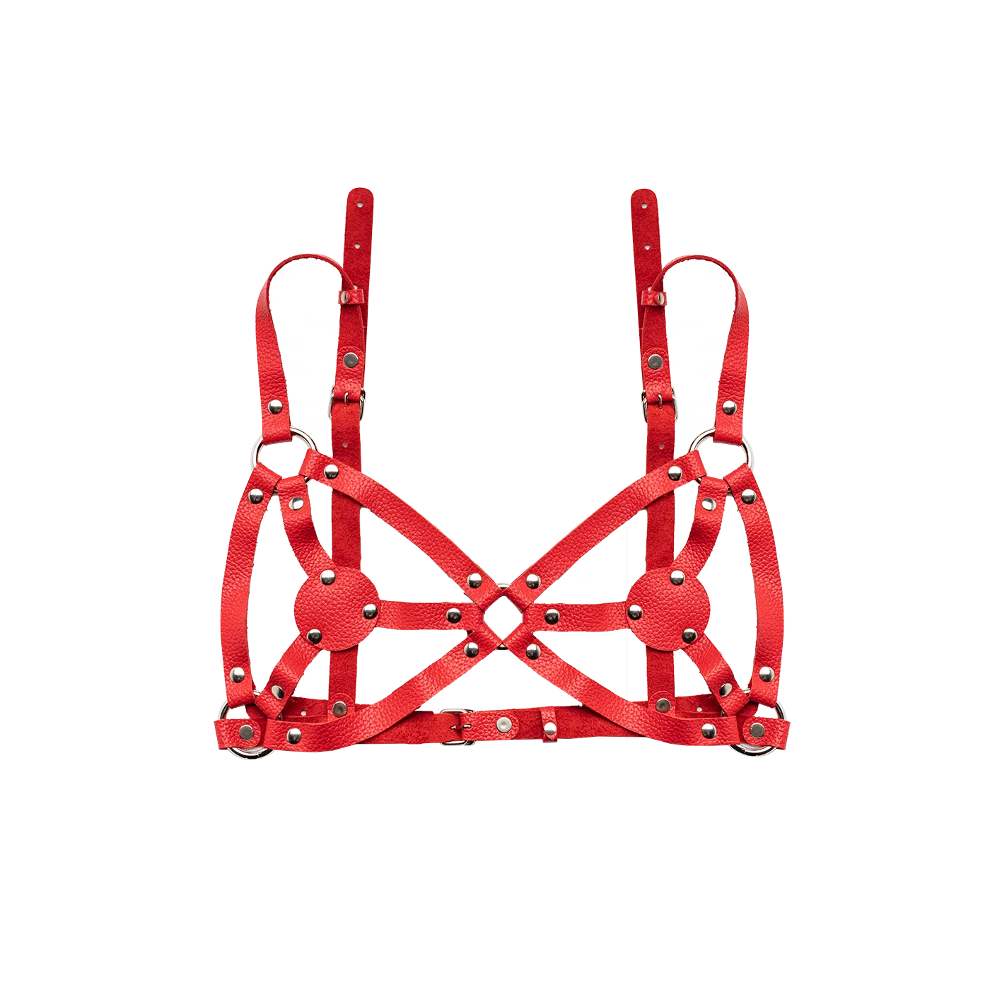 —Бюстгалтер из красной кожи с пестисами